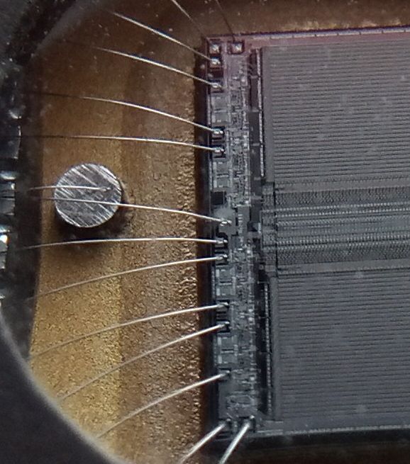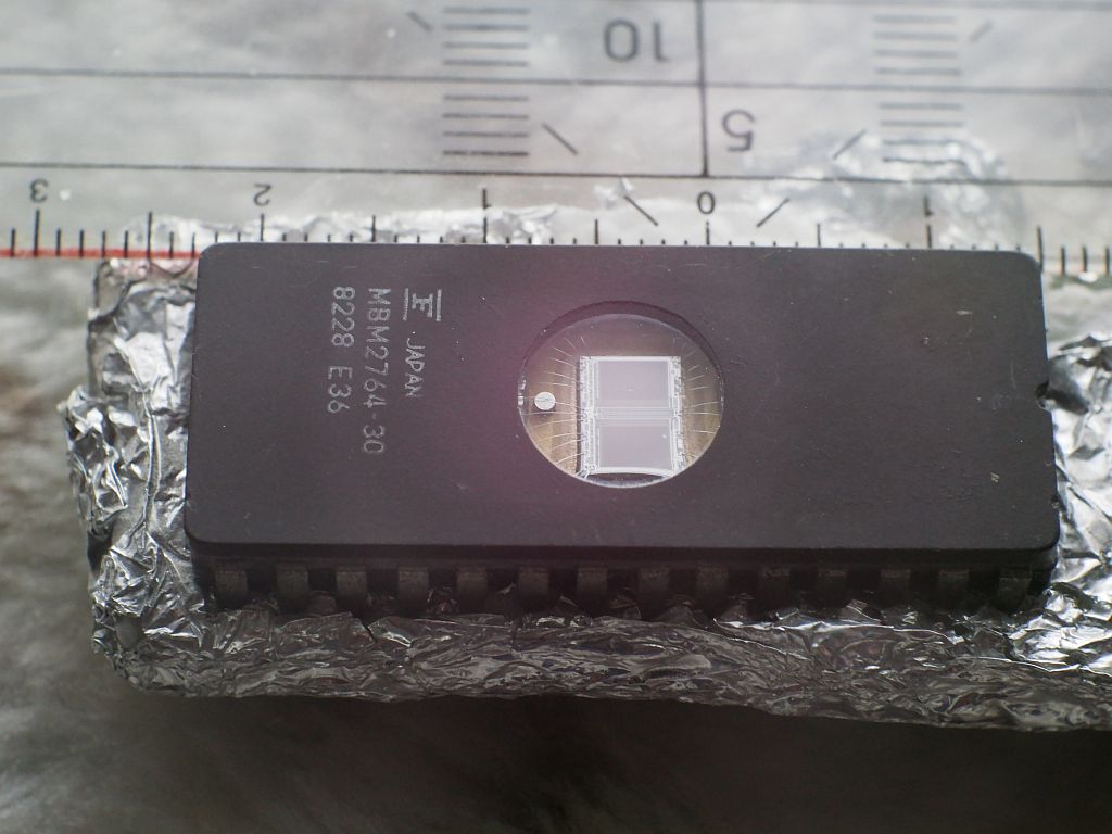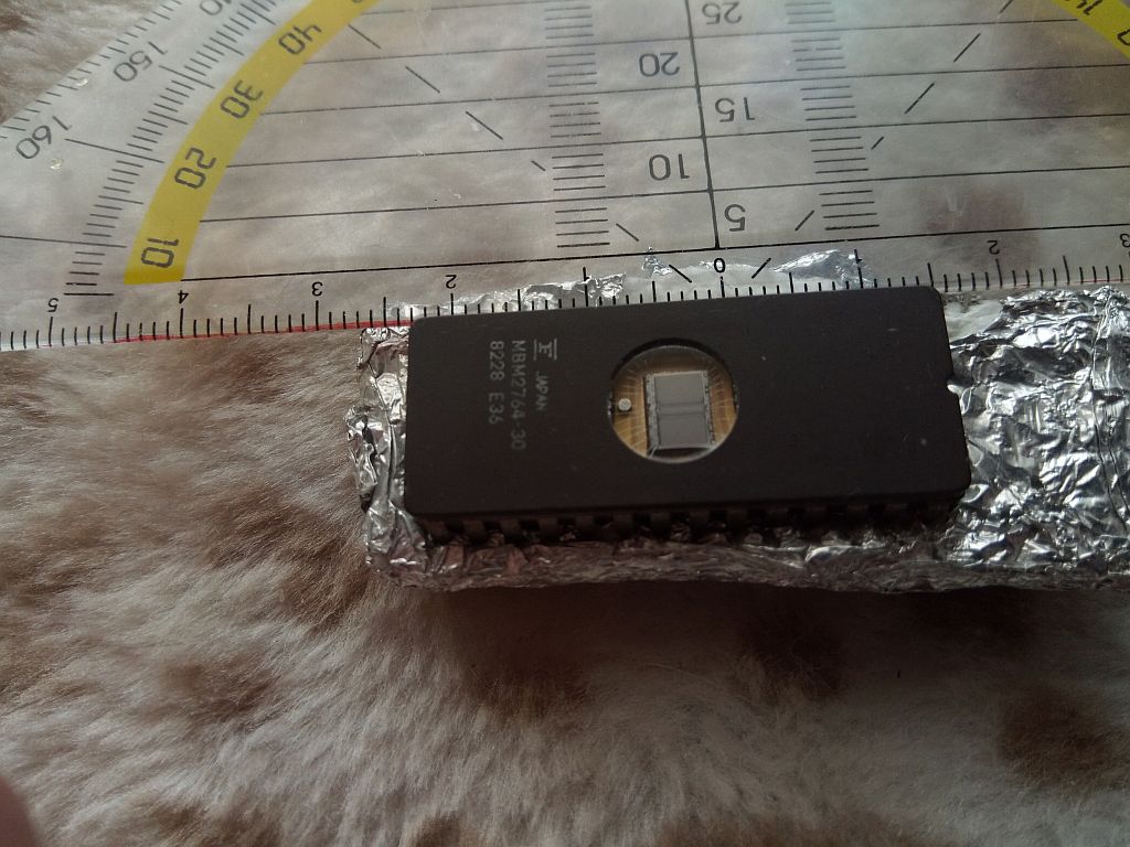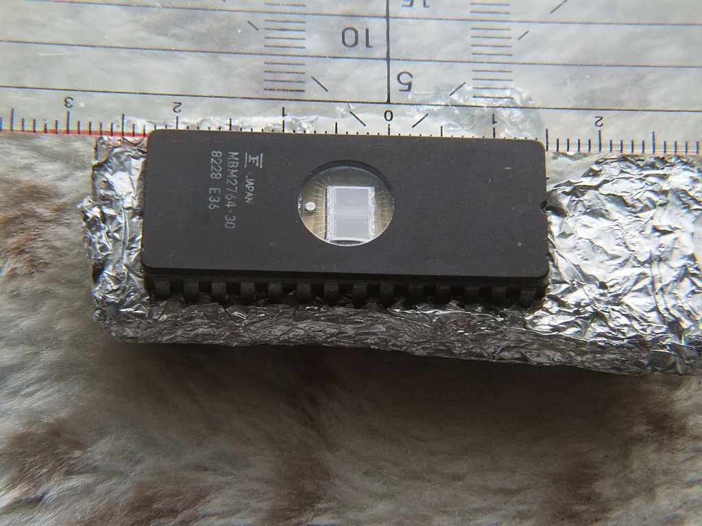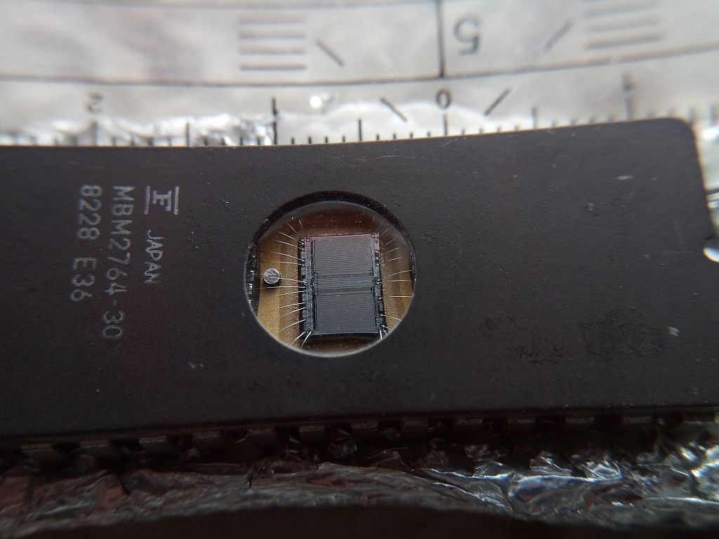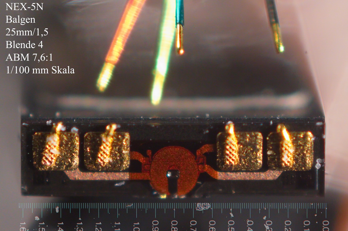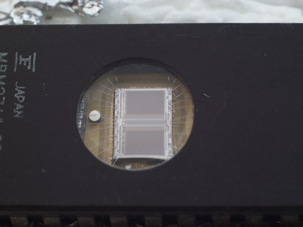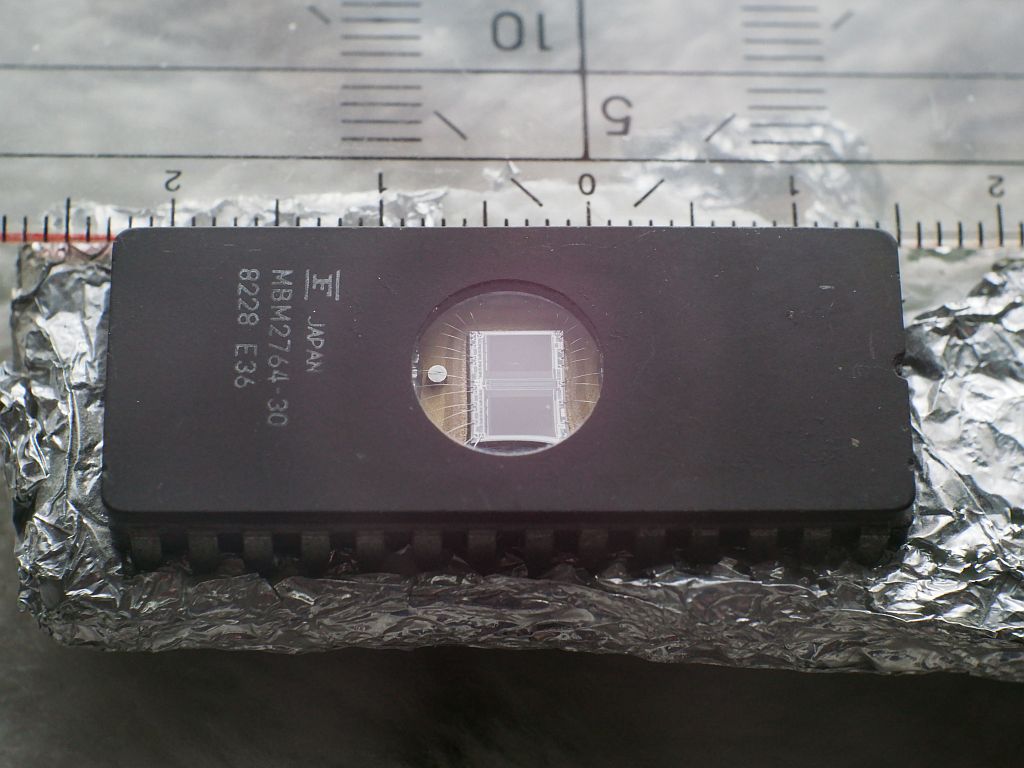 ich habe Willis Aufnahmen zum Anlass genommen, zu untersuchen, was mit meinem Fundus bezüglich Makro-Aufnahmen möglich ist. Die Aufnahmen haben keinen gestalterischen Anspruch. Modell ist ein EPROM aus den 80ern. Das ist ein nichtflüchtiger Speicher, der vor dem neu bespielen mit UV-Licht gelöscht wurde; deshalb sind die 2 Chips sichtbar.