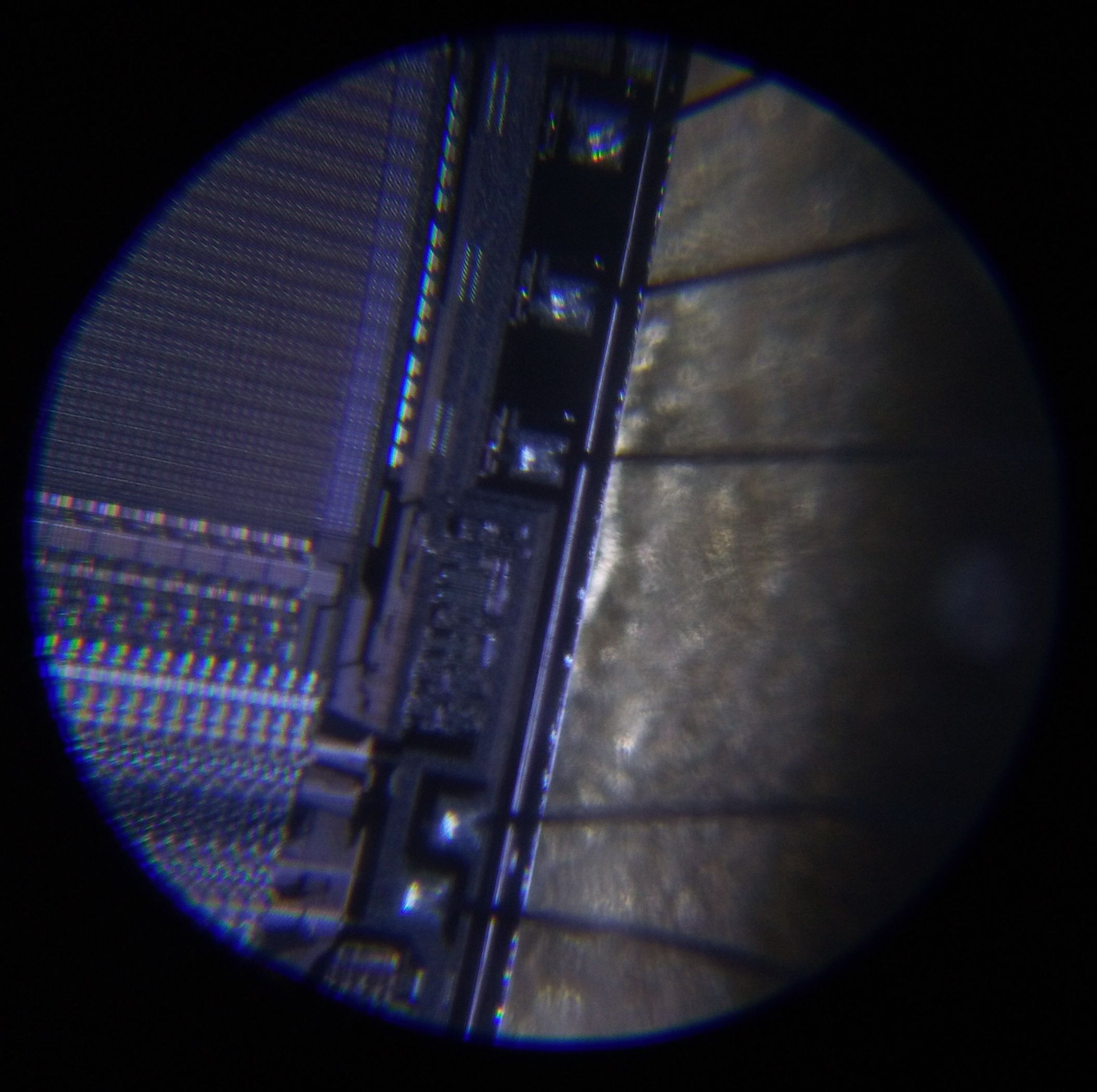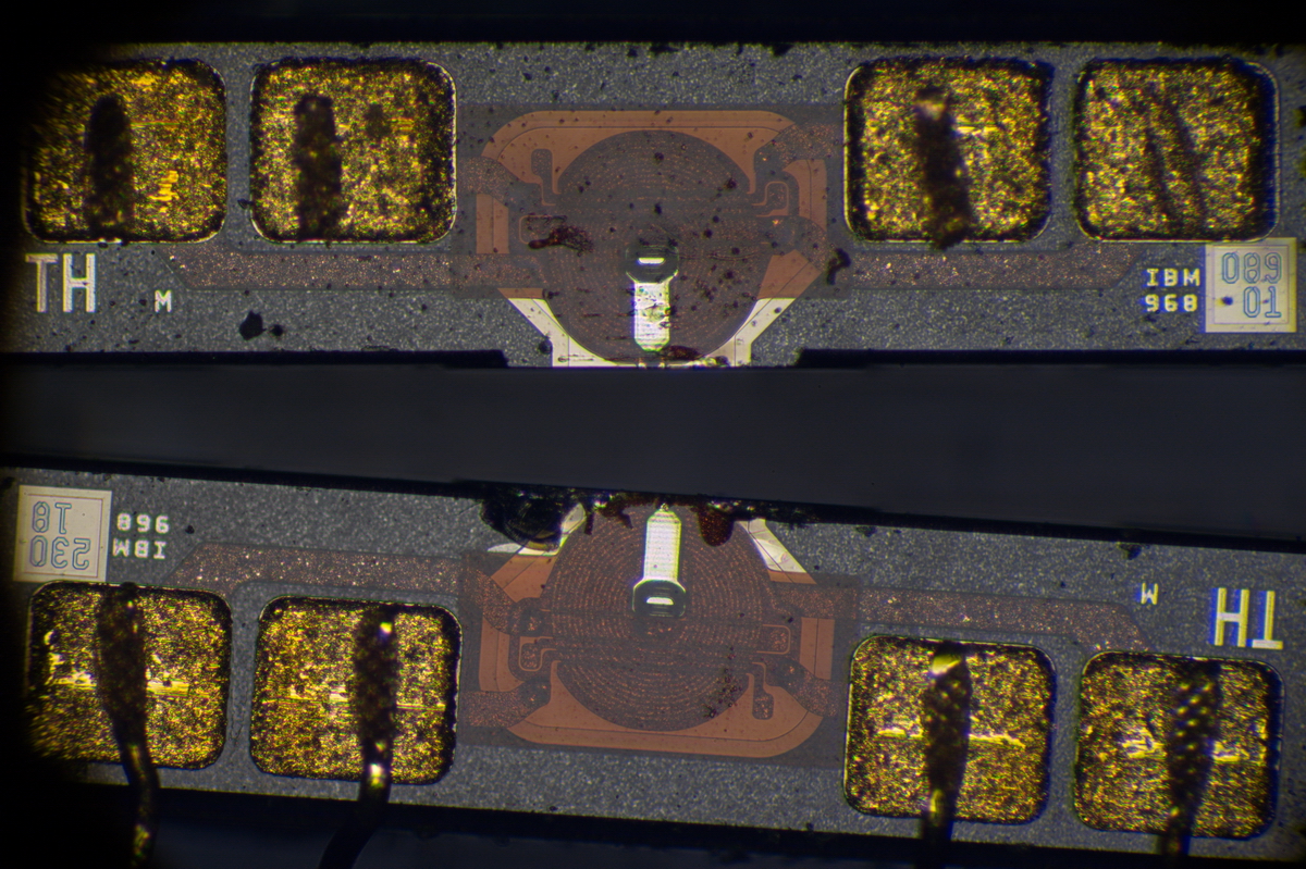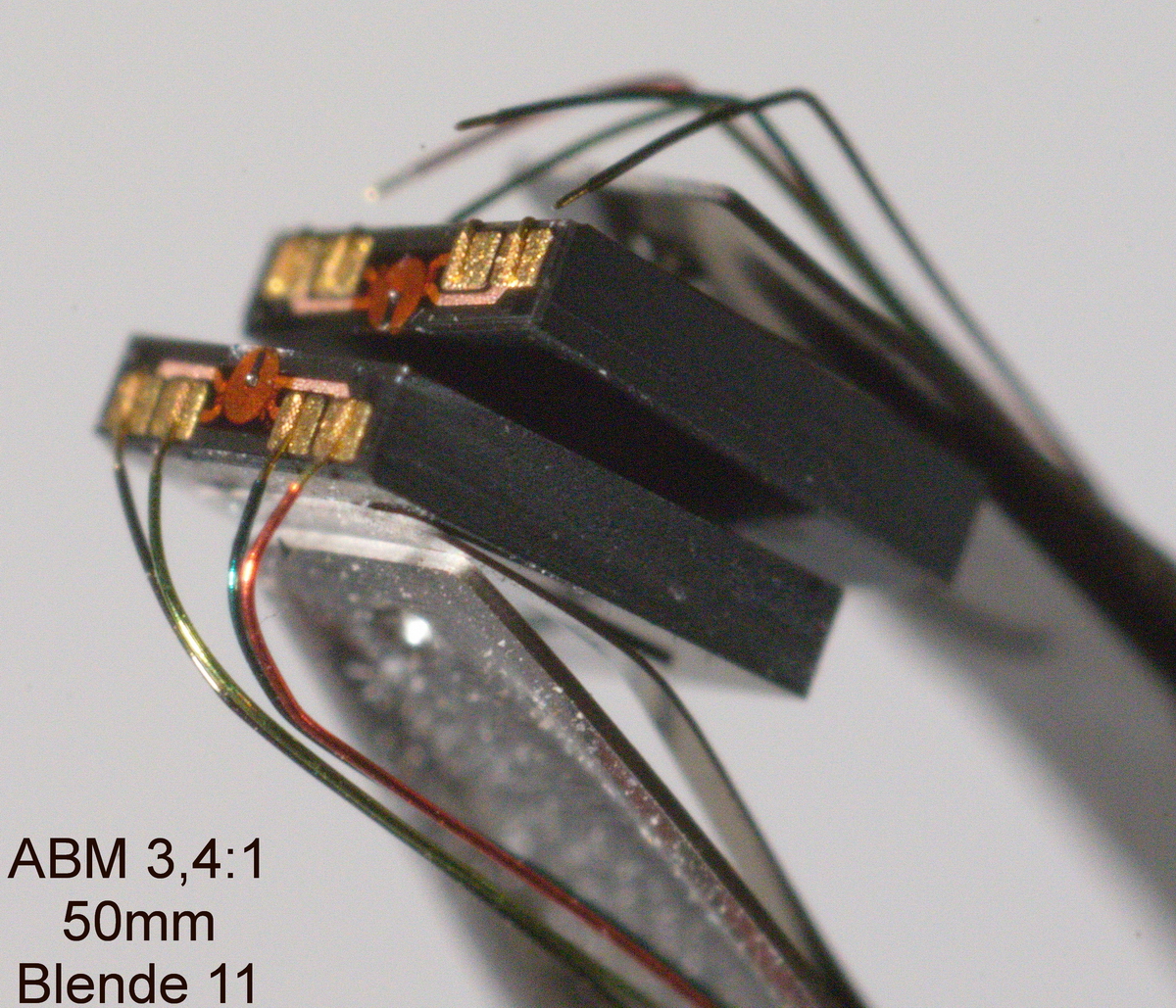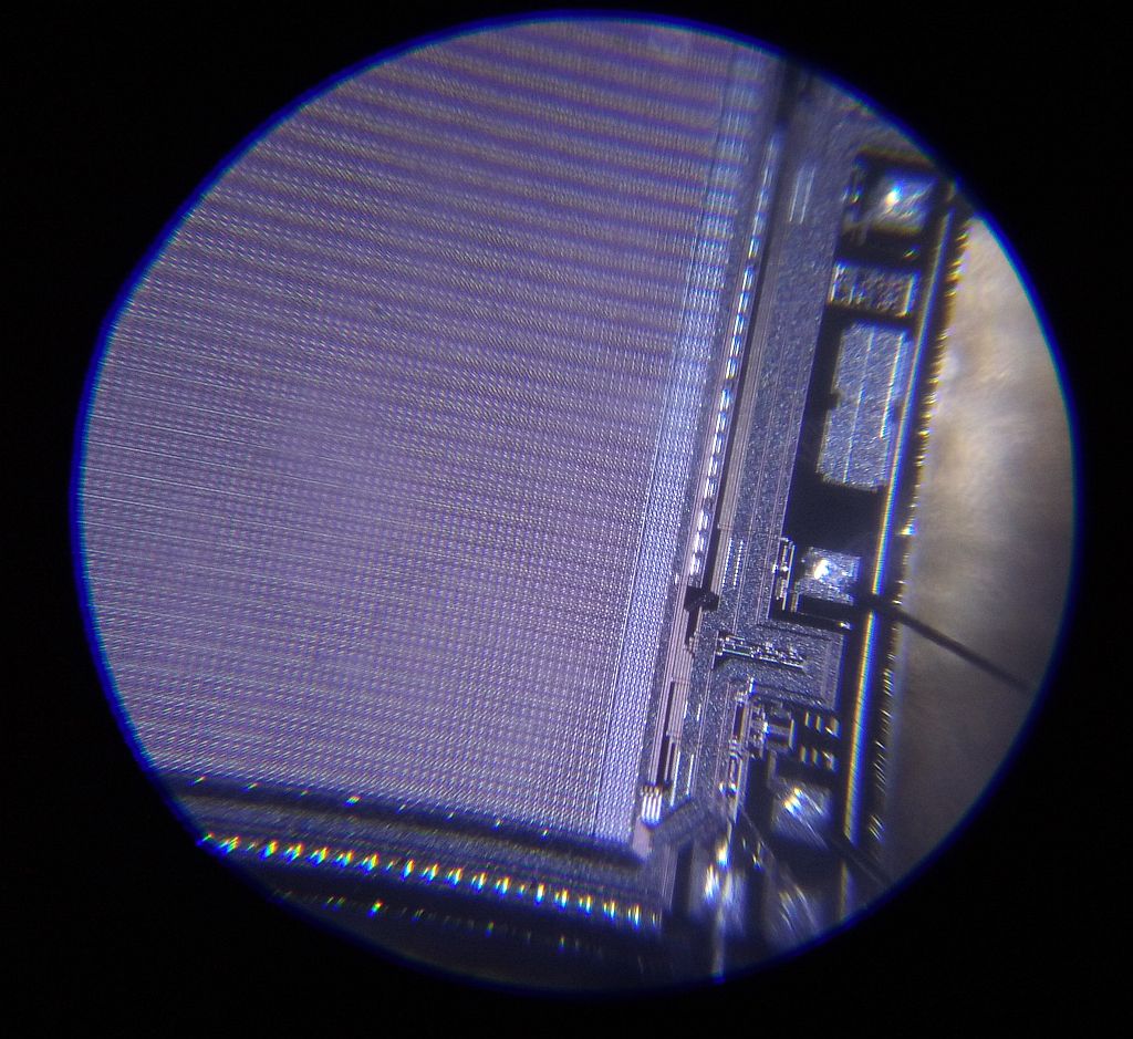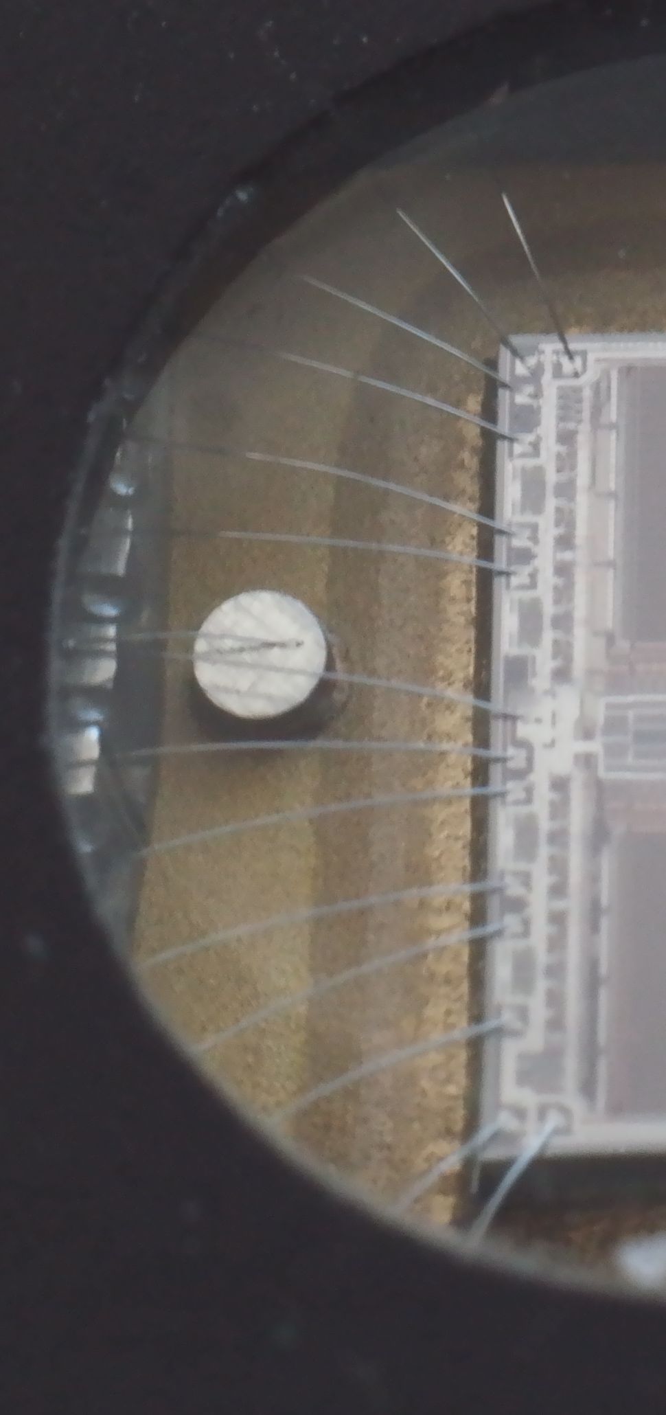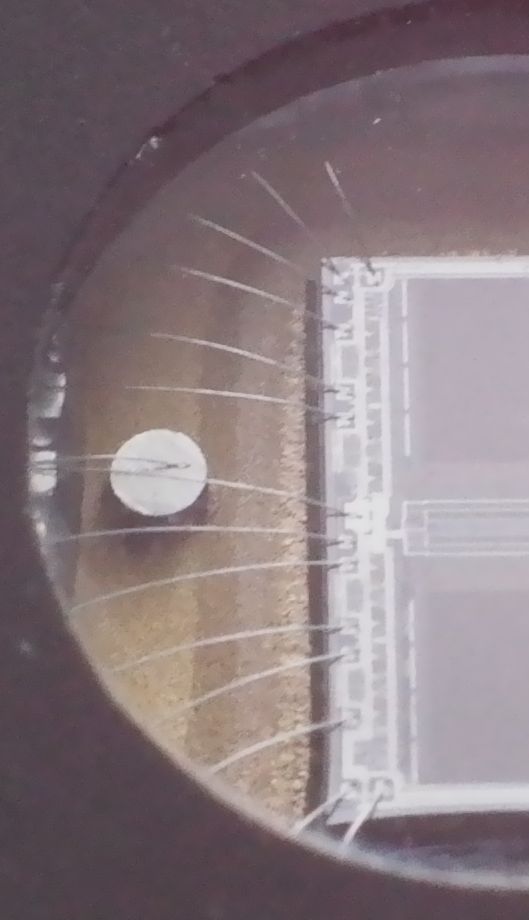 ich habe Willis Aufnahmen zum Anlass genommen, zu untersuchen, was mit meinem Fundus bezüglich Makro-Aufnahmen möglich ist. Die Aufnahmen haben keinen gestalterischen Anspruch. Modell ist ein EPROM aus den 80ern. Das ist ein nichtflüchtiger Speicher, der vor dem neu bespielen mit UV-Licht gelöscht wurde; deshalb sind die 2 Chips sichtbar.