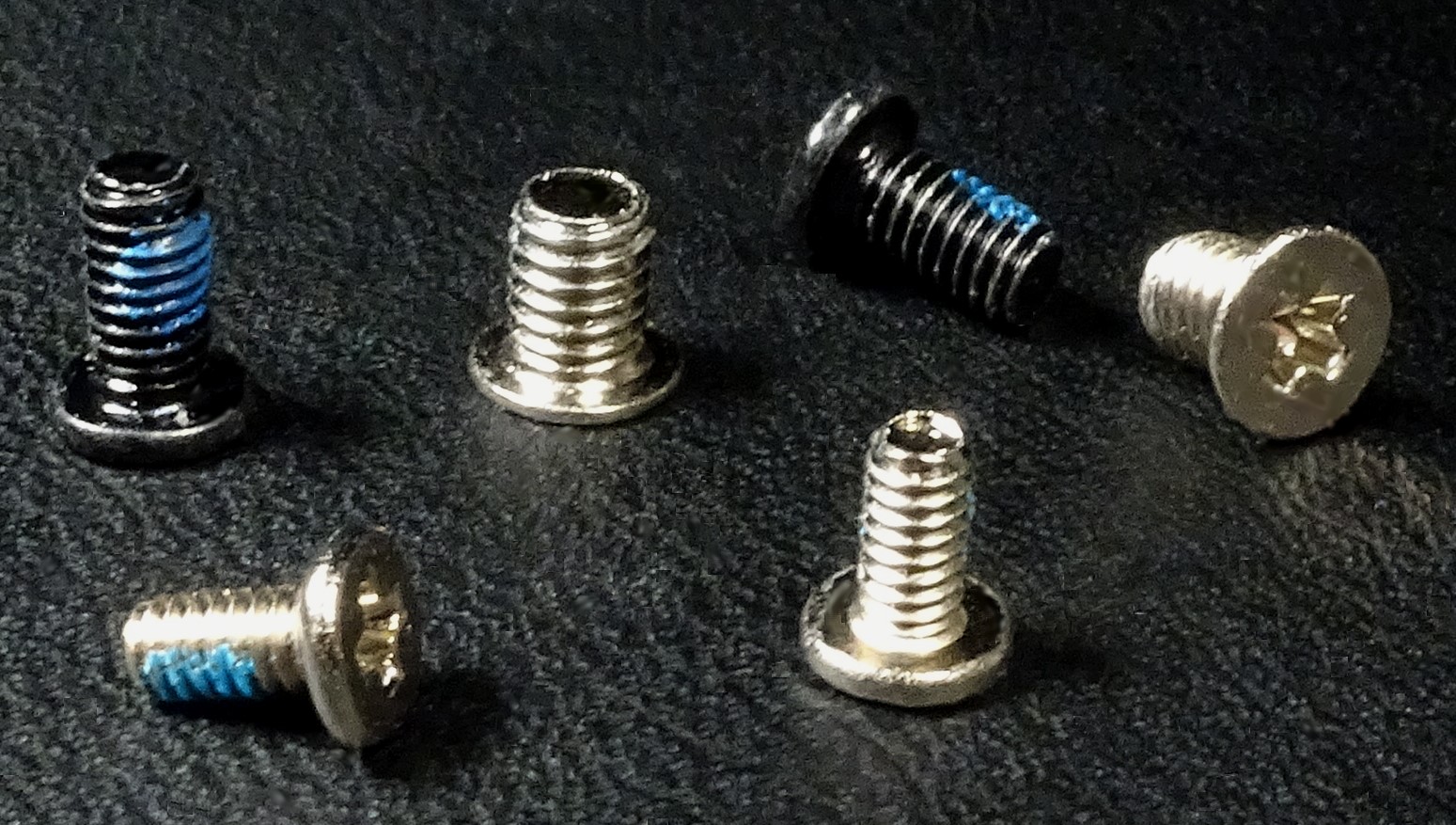 Ich habe auch eine Aufnahme einiger Mini-Schrauben aus dem Computerbereich. Die Schrauben sind 3 mm lang. Mir ist dabei erst die Farbigkeit aufgefallen, die von dem Sicherungslack herrührt, sieht man mit blossem Auge kaum.