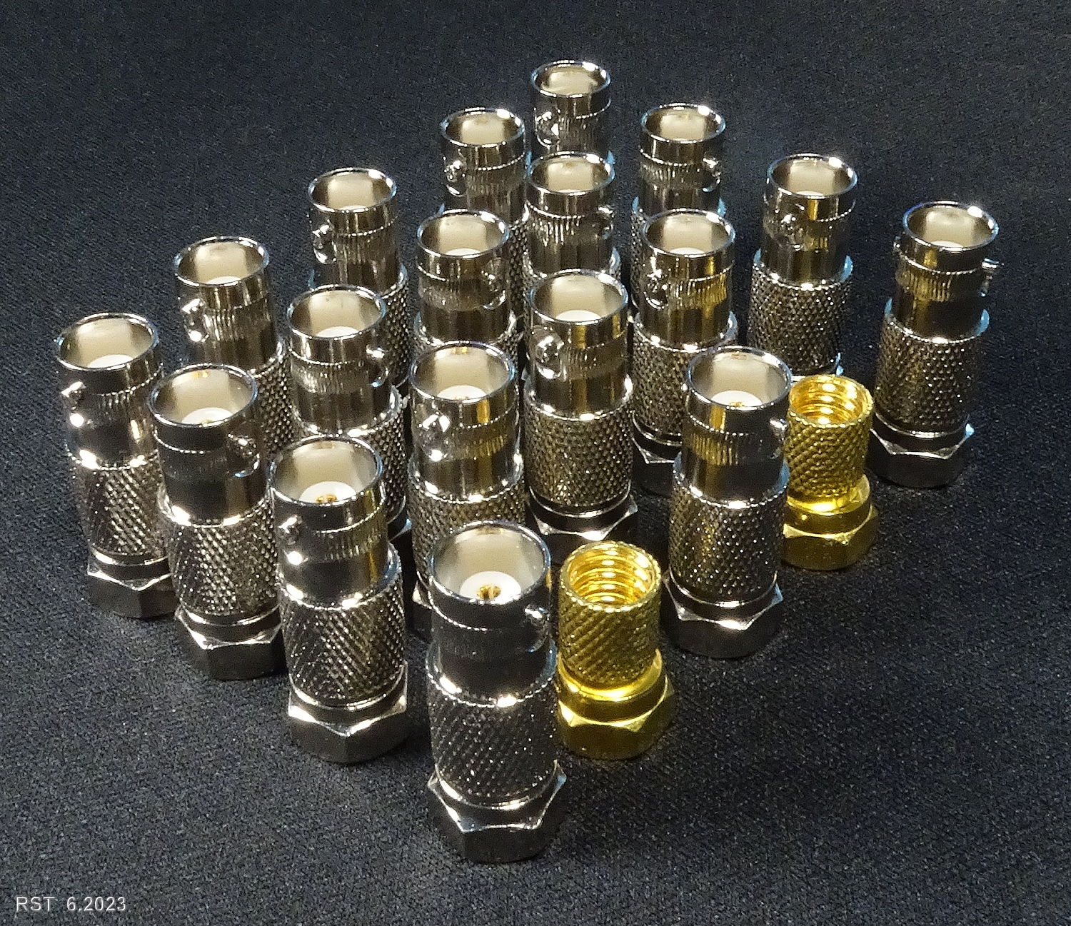 beim Hantieren mit meinen Koaxialkabel-Adaptern (für Hochfrequenz-Verbindungen) viel mir auf: Die sehen eigentlich ganz schick aus. Also Kamera geholt und ein paar Aufnahmen im milden Makrobereich geschossen.
