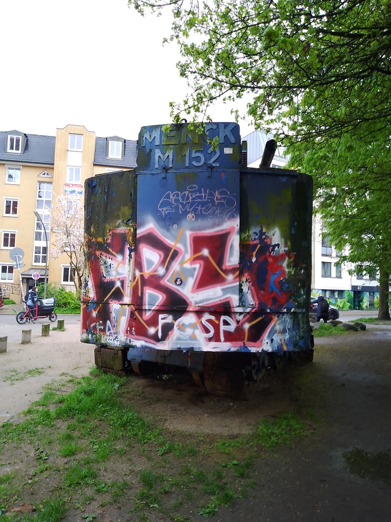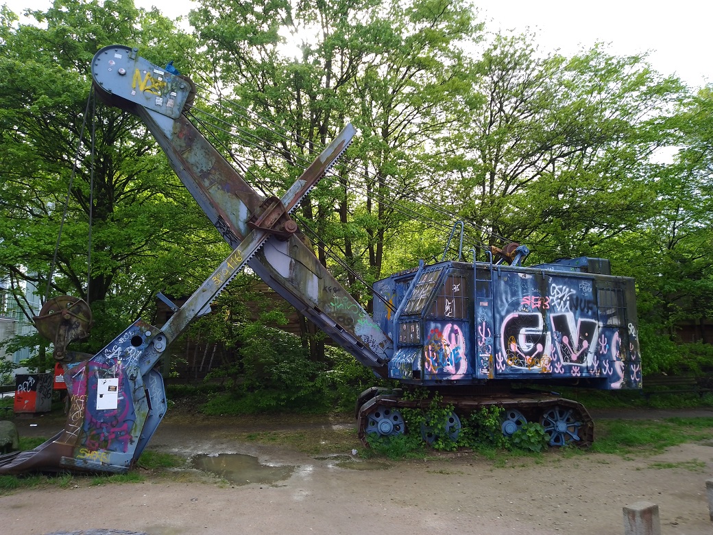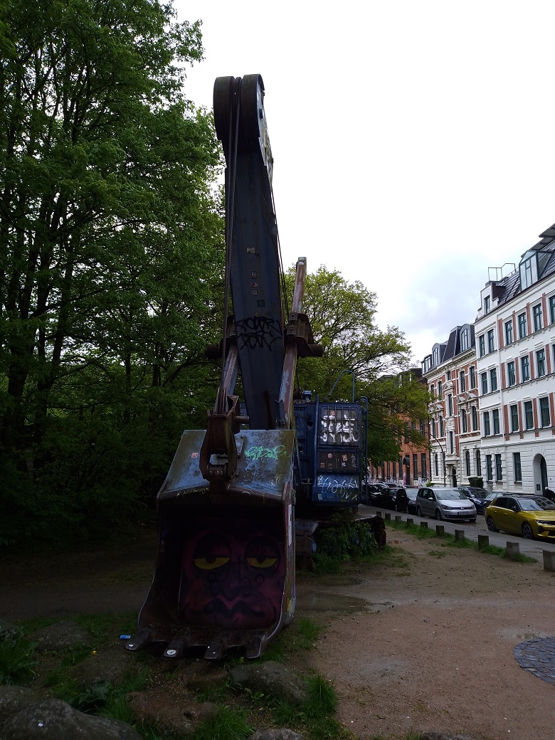 diesen Menck M 152 Seilbagger habe ich heute zufällig in Hamburg-Ottensen gesehen. Er steht dort direkt neben einem Kinderspielplatz. Über die "Kunst" am Objekt läßt sich sicher trefflich streiten, mein Geschmack ist es aber nicht.