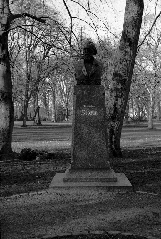 Denkmal in Heide für Heinrich von Zütphen (ev. Reformator), der am 10 Dezember 1524 unweit dieser Stelle als Ketzer den Märtyrertod gefunden haben soll. Neuere Forschungen gehen aber nun davon aus, dass die Hinrichtung an der "üblichen" Stelle am Galgenberg, vor den Toren Heides, stattgefunden hat.