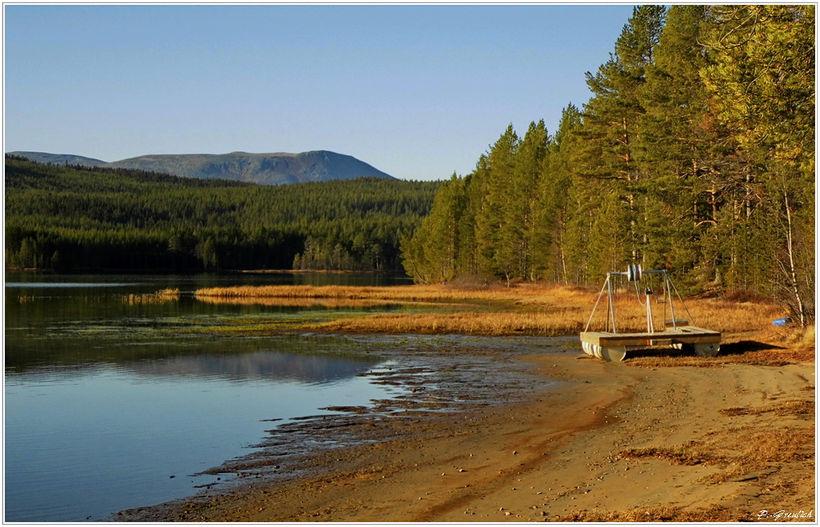 Heut war ich mal wieder unterwegs und das hier hab ich euch mitgebracht. Das einladende, sandige Ufer eines Sees unterhalb des Sonfjäll Gebirges/Härjedalen/Schweden.