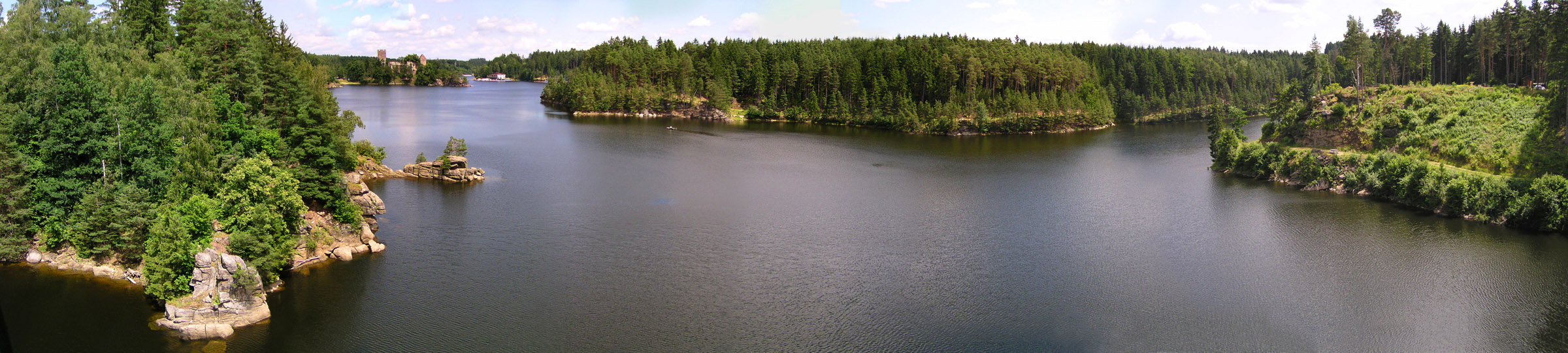 Willi:Deine beiden See-Bilder haben mich richtig beeindruckt. Ich hab gleich in meinem Archiv gekramt, um auch was Stimmiges mit einem See aus Österreich zu finden. Der Fluss Kamp im nördlichen Waldviertel von Niederösterreich wird in Ottenstein aufgestaut und zeigt fjordartige Arme im Kiefernwald. Wir kommen hier seit über 30 Jahren gelegentlich zum Wandern und Bootfahren her.