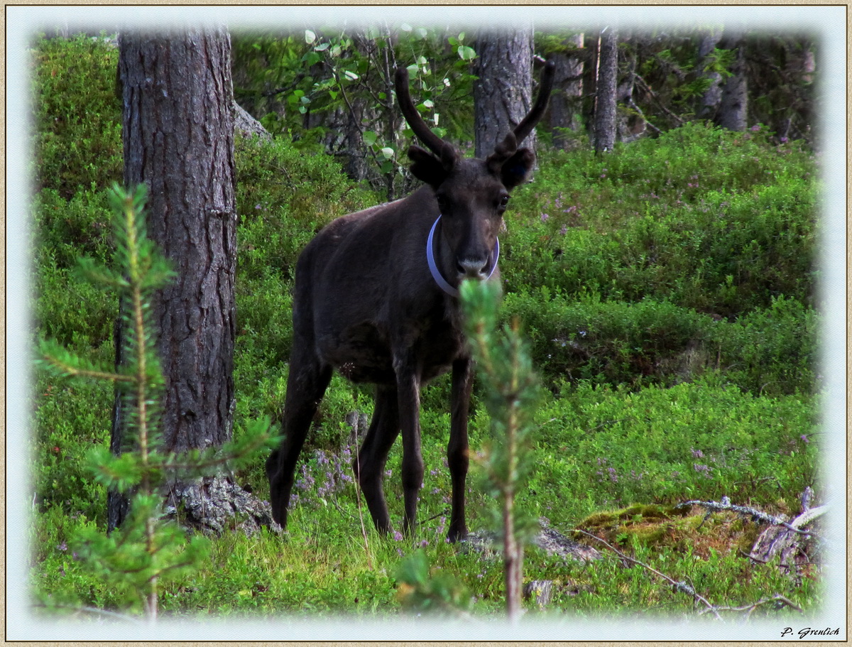 Wie dem auch sei. Mehr hab ich heute leider nicht für Euch. Eine Rentierdame (mit Reflexhalsband), die mir vorhin im Wald begegnete.