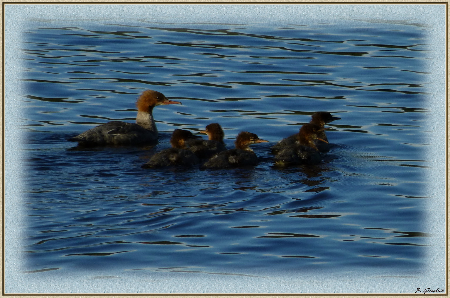 Mutter Säger und ihre Kinder schwammen mir heut morgen über den Weg. Klick, da hatte ich sie "im Kasten". Ob es nun aber Gänsesäger, Mittelsäger oder sonstige Säger sind kann ich mangels ornithologischer Kenntnisse nicht sagen. Vielleicht kennt ihr euch ja aus?