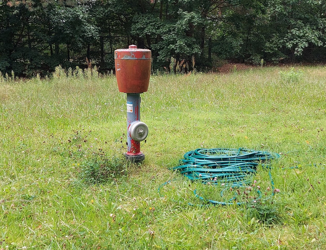 Irgendwie passt der Gartenschlauch nicht zum C-Rohr-Hydranten ... Oder ist das ein Tiefbrunnen-Stadtwerkeanschluss?