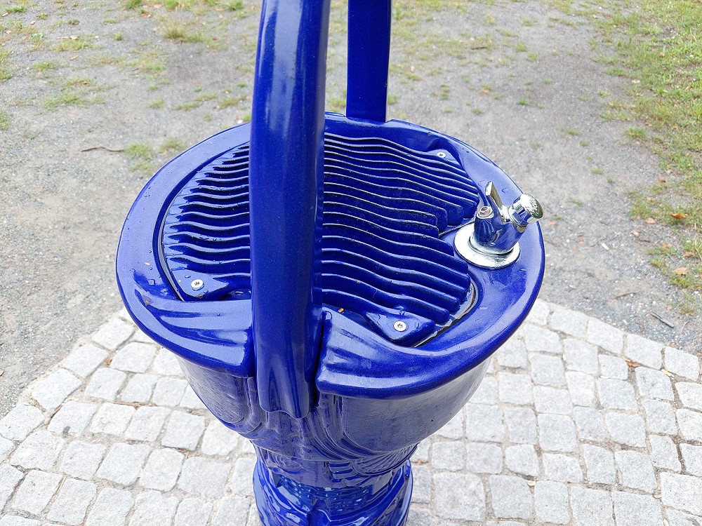 Kurz drücken und es kommt ein Trinkwasserstrahl heraus, vielleicht nach langer Sprudelpause etwas abgestanden und im August erstmal lauwarm