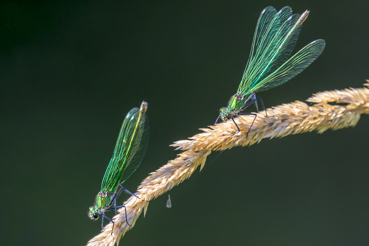 auch sowas findet man am Wegesrand. Auf einer Fototour, die eigentlich zu einer "Wohnwand" der Bienenfresser gehen sollte, schwirrten an einem kleinen Wasserlauf Prachtlibellen herum. Mit den Bienenfressern wurde es dann nichts, also wenigsten ein paar Bilder von den bunten Schwirrlingen gemacht. Alle Bilder entstanden mit dem Nikkor Z 400mm/f4,5 meist auch bei Ofenblende an der Nikon Z50II.