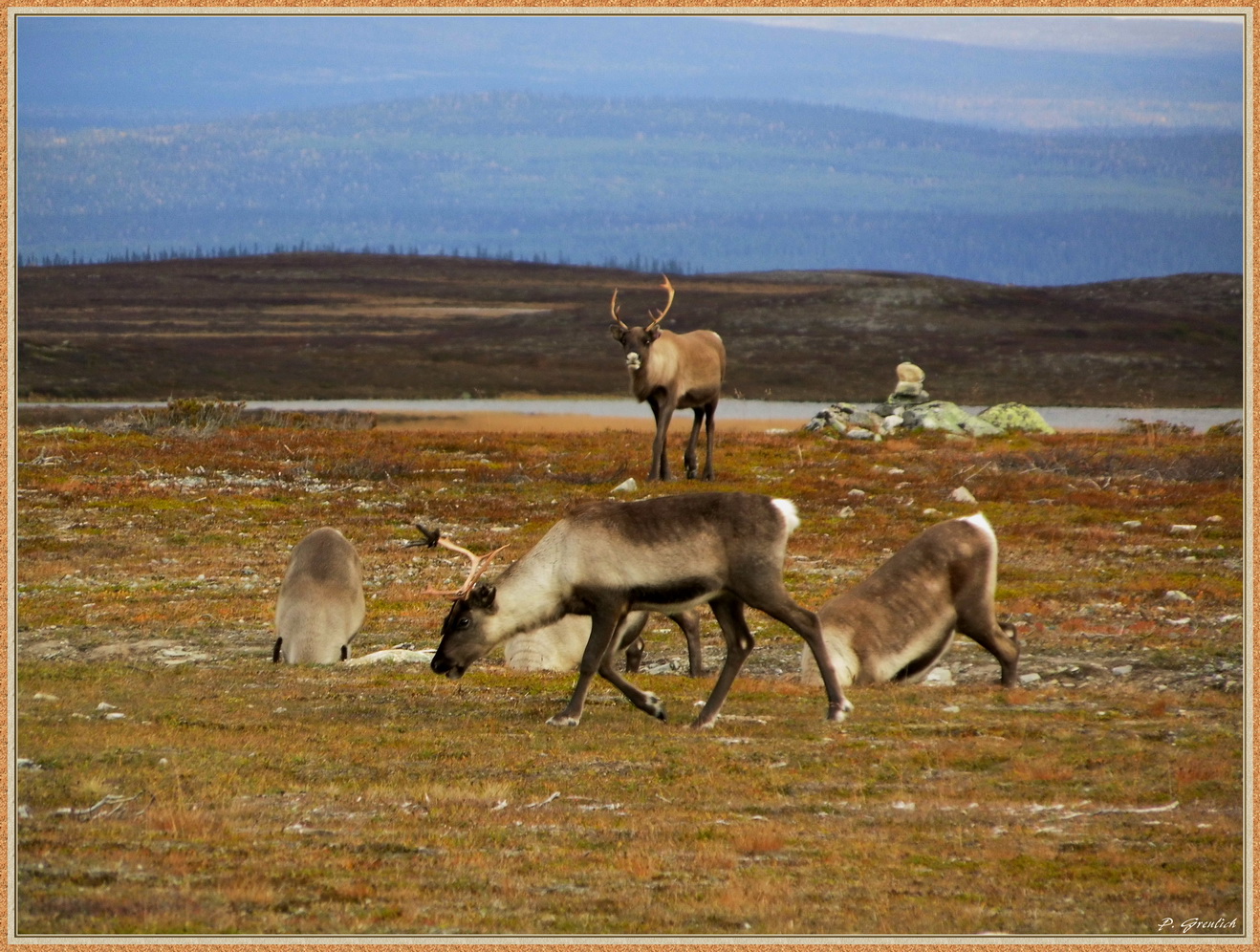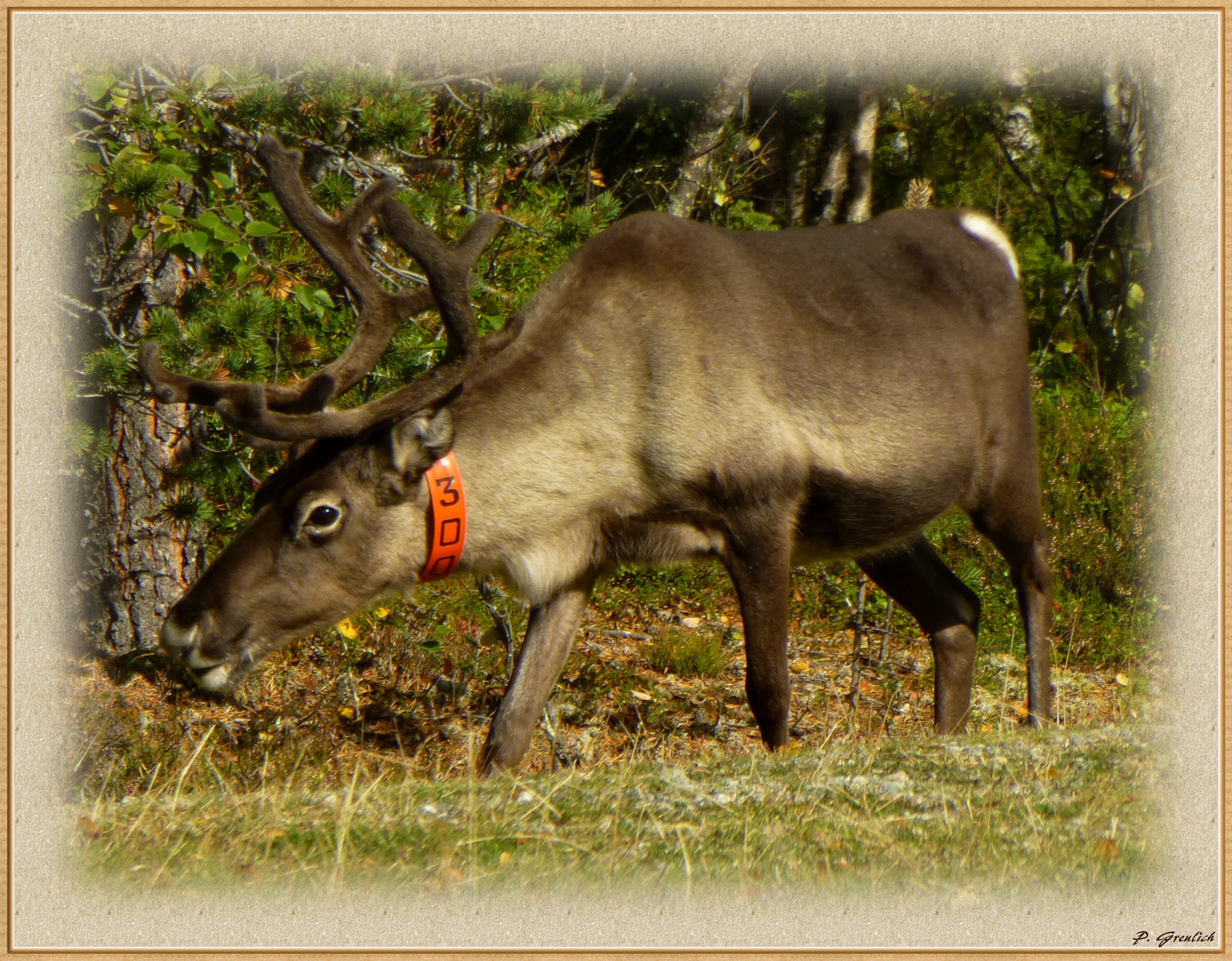 Sie war wohl neugierig, kam mir bis auf etwa drei Meter nahe, als ich gerade dabei war, einen Wasserlauf zu fotografieren. Nun sind Rentiere in einem Rentierzüchtergebiet keine Seltenheit... ich sehe sie fast jeden Tag... aber ich denke mir, die Rentierpopulation Mitteleuropas beschränkt sich auf ein paar Zoos... daher seht ihr solche Tierchen nicht ständig und es könnte sein, dass euch das interessiert. Wenn nicht, einfach nicht hingucken.
