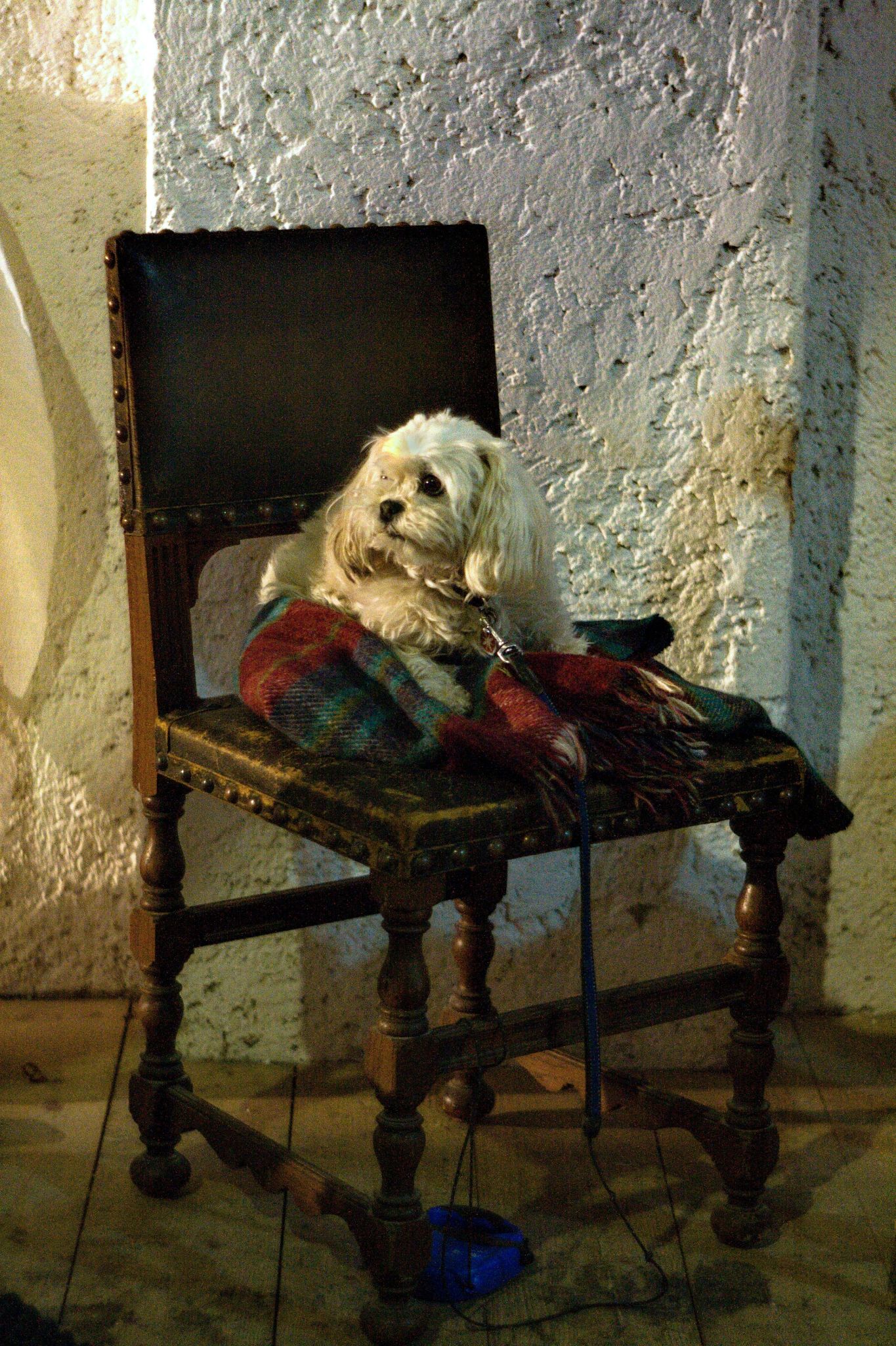 eines meiner seltenen Hundebilder. In einem dunklen Raum mit Tages- und Kunstlicht.