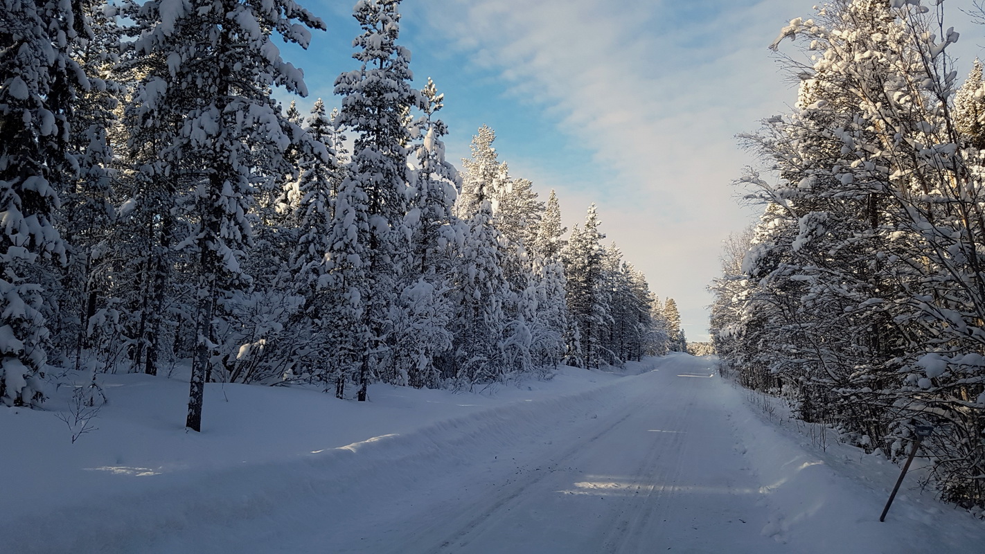 Das ist eine Schotterstrasse, eine Sackgasse, die nach 2 Kilometern auf einem einsamen Gehöft endet. Permanent wohnen an dieser Strasse nur die Nachbarin auf eben diesem Gehöft und wir. Die Landstrasse, von der diese Strasse abzweigt hat für meinen Geschmack sogar zu viele Kurven, Anhöhen und Senken. Überall kann plötzlich Wild auftauchen und wenn die Wintertouristen aus Stockholm und anderen Städten hier mit ihren PS starken Luxusautos einfallen und ohne ausreichende Erfahrungen waghalsige Überholmanöver auf vereister Fahrbahn durchführen, dann kann man wirklich graue Haare kriegen... aber die hab ich ja schon.
