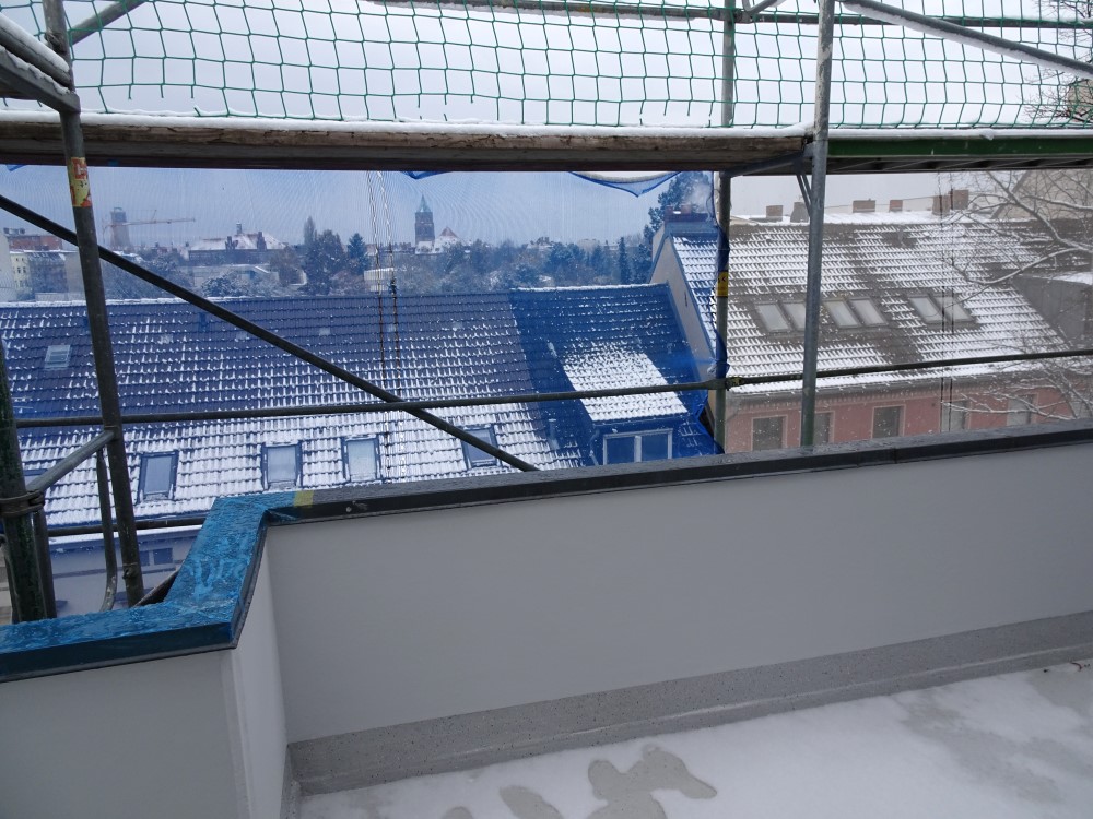 Wieder mal (immer seltener) gibt es ein wenig Schnee auf dem Balkon und den Dächern...