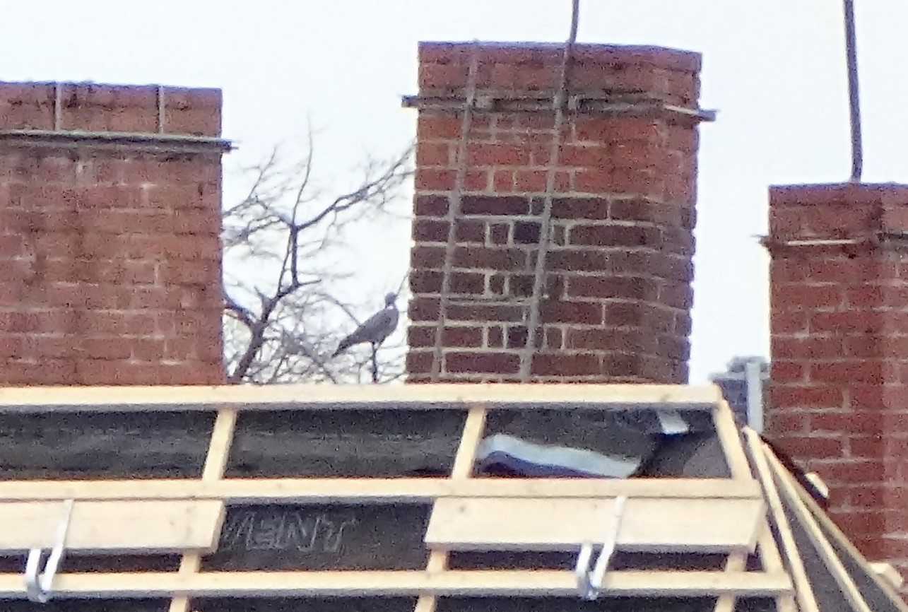 Dachdecker-Arbeiten in 370 Meter Entfernung oder "Portrait einer Taube":