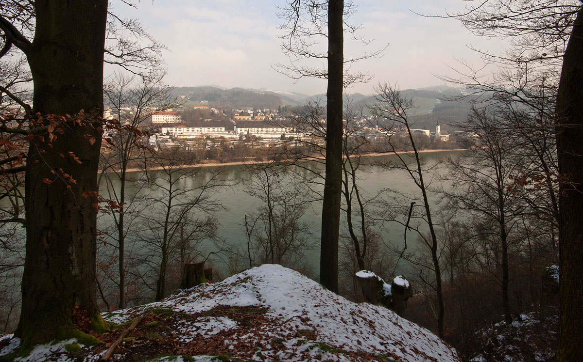 Der Gegenschuß im Winter auf die 4 km von der Großstadt Linz im Donautal entfernt gelegenen Gartenstadt Puchenau