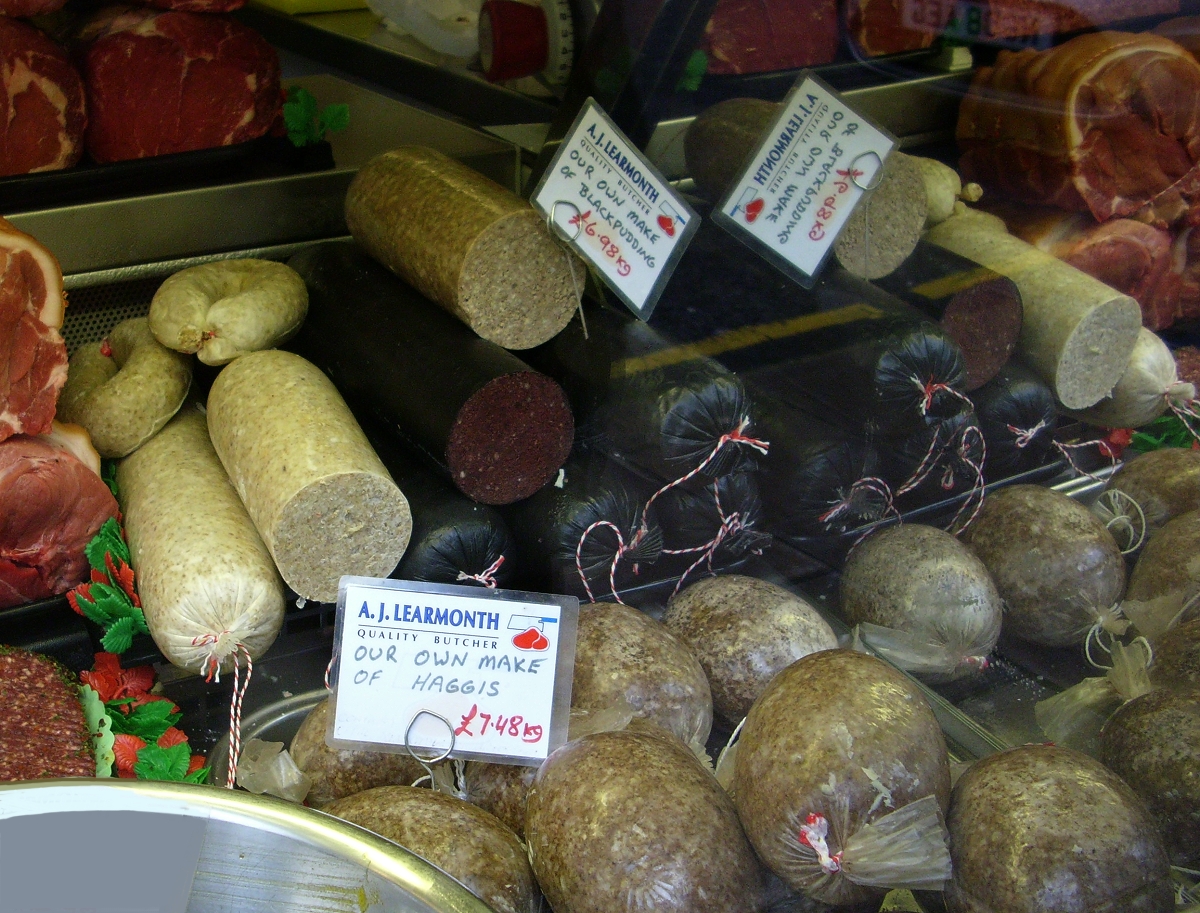 andere Länder, andere Sitten oder besser andere Speisen: Hier einen Blick in einen schottischen Fleischerladen (Metzgerladen). Besonders das Haggis ist für dem kontinentalen Geschmack vielleicht etwas gewöhnungsbedürftig, insbesondere wenn man Kenntnis über die Zutaten erlangt. Ich fand den Geschmack ganz ok.