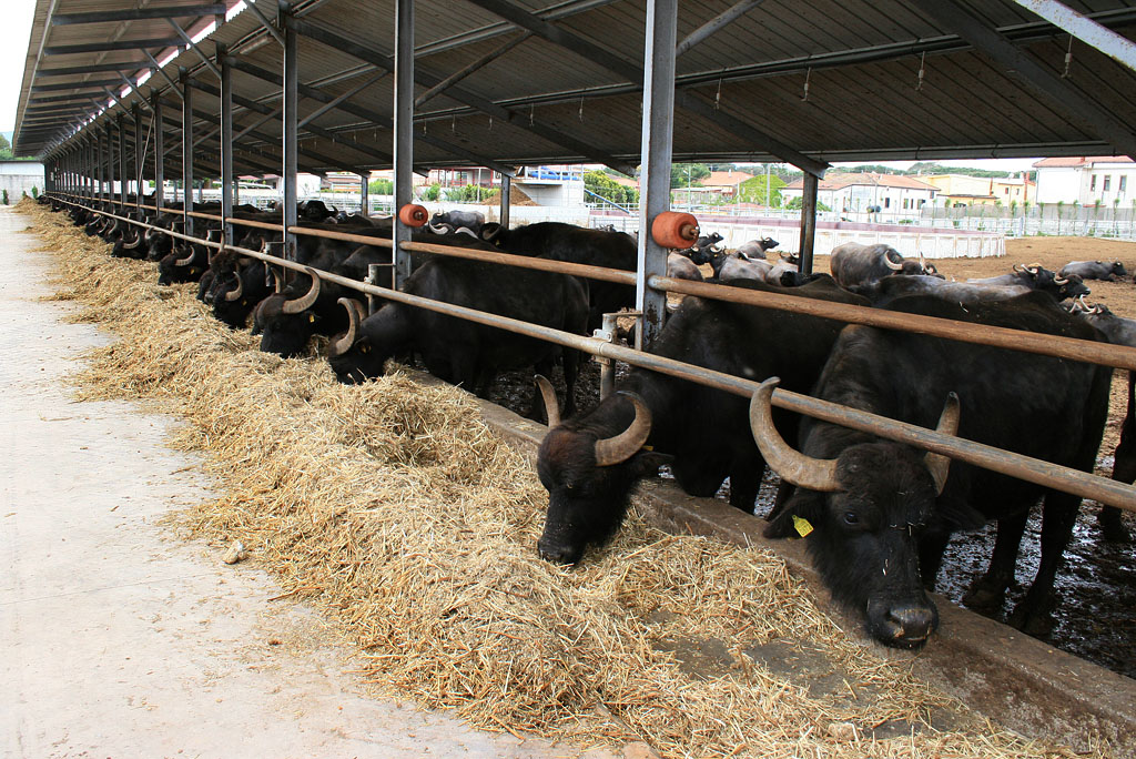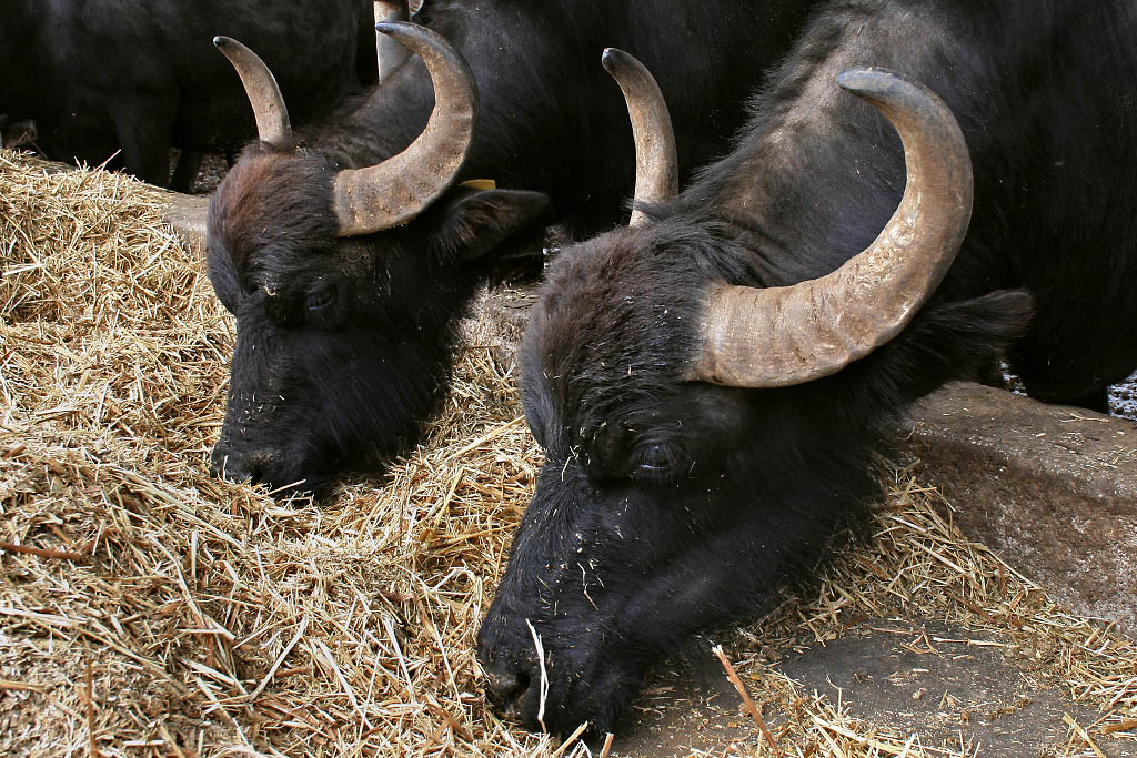In der Büffelfarm bei Paestum in Kampanien werden die Büffel zweimal täglich gemolken.