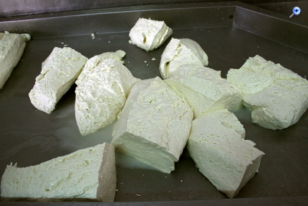Dieser wird im Wasserbad nahe 100 Grad geknetet bis die glatte, teigige Masse des Mozzarella entsteht.