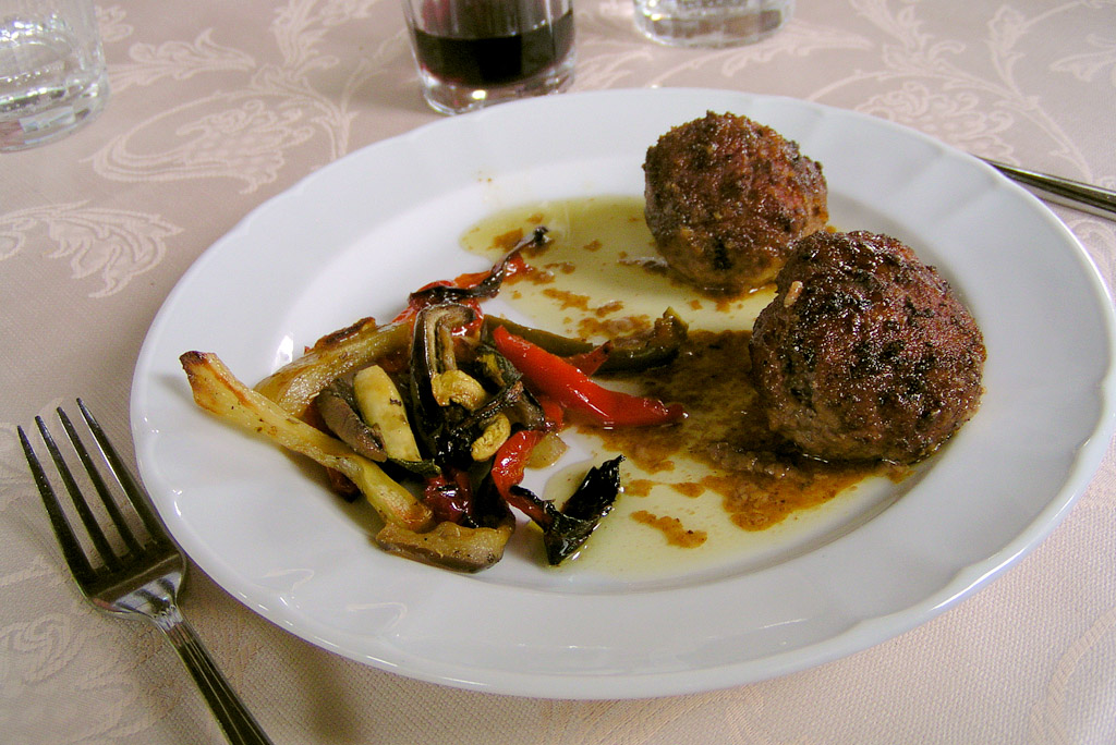 Später gibts von den Büffeln noch gut gewürztes Fleisch in Form von faschierten Bällchen mit gebratenem Gemüse
