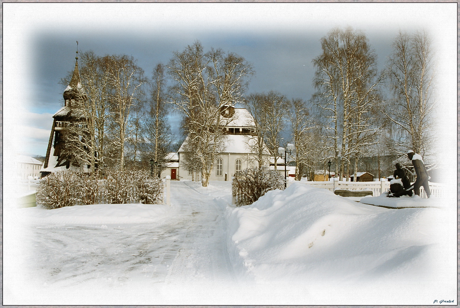 Schönes Winterbild der schwedischen Kirche. Habe sie mir gleich in (G) Streetview gesucht - und gefunden Koordinaten: Hede 62°25'04.29" N 13°31'03.58" O