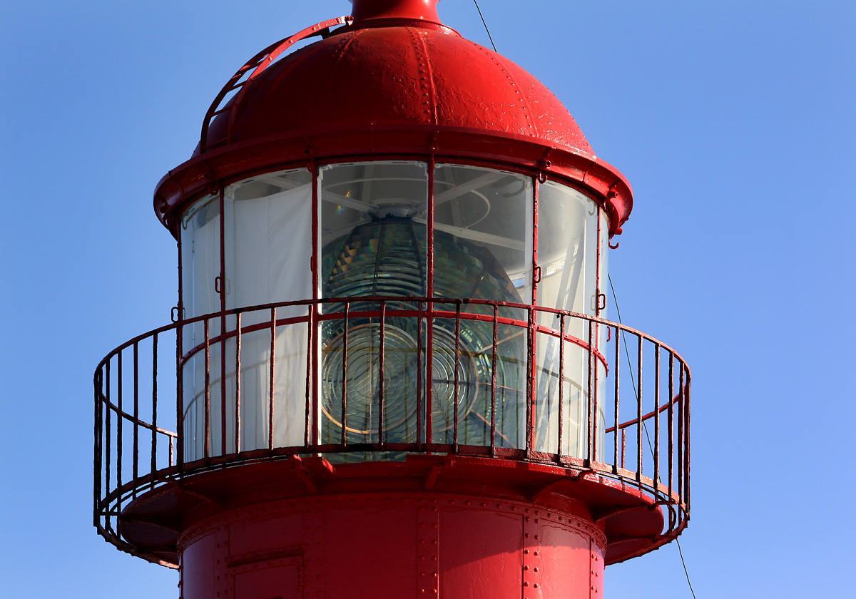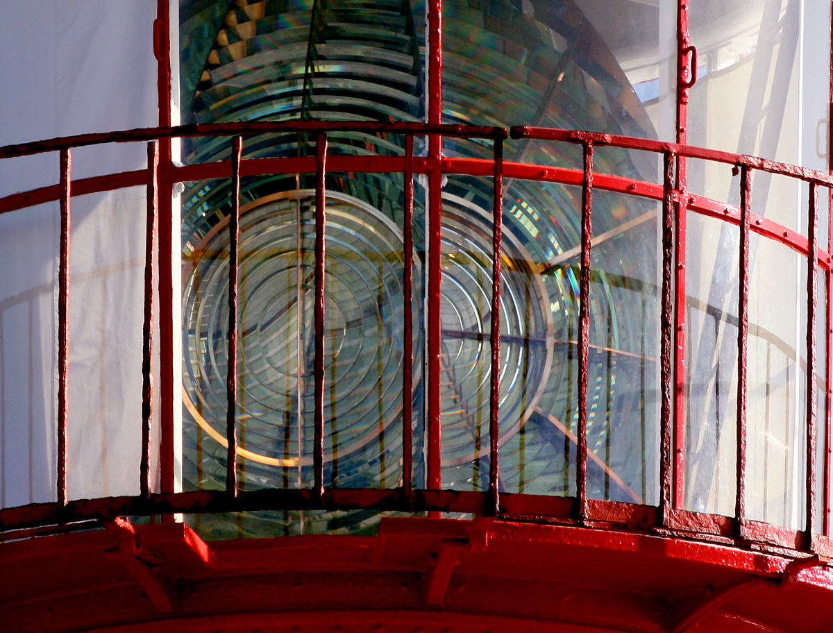 Die Fenster ergeben interessante Brechungen beim Blick auf die Laterne mit den Stufenlinsen