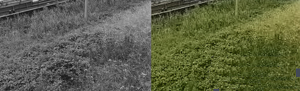 Ist ja toll, was der Algorithmus von "Colorize Photos" schafft. Aber die primitive Stempelei in der rechten unteren Ecke fällt schon unangenehm auf. Da war wohl ein Logo einkopiert?
