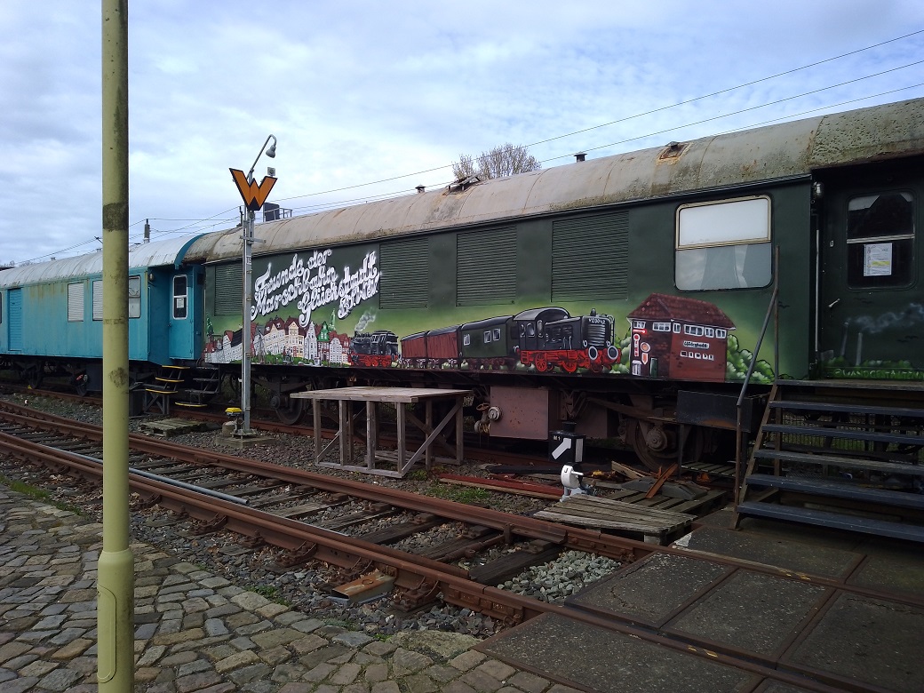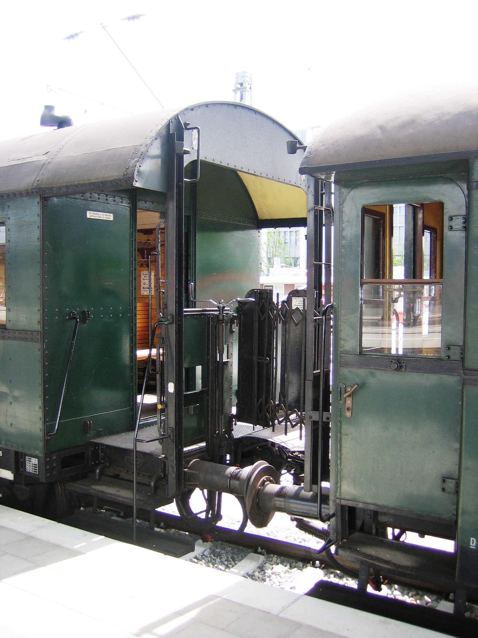 hier ist was die Gleise nieder hält. Das waren die Personenwagons der Nebenbahnen. Diese wurden Donnerbüchsen genannt, weil sie ein sehr lautes Rollgeräusch generierten, obwohl sie nur zweiachsig waren / sind. Sie beförderten nicht nur Reisende, sondern sammelten auch die Milchkannen ein. Und wenn es galt einen Ochsen zu verschicken, so durfte er im Anhang ( Gepäckwagen ) Platz nehmen. Geknipst wurde mit Ixus 30. 3,2 Megapixel !!