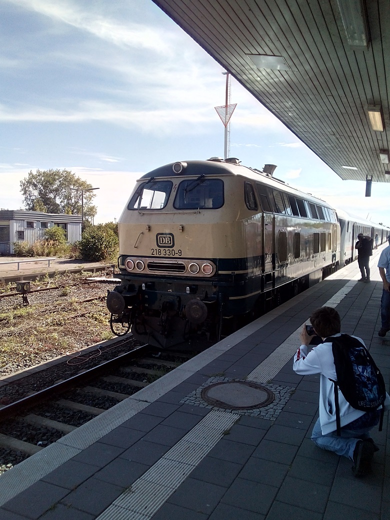 der 30. August 2022 war der letzte Betriebstag der "Vogelfluglinie" von Lübeck über die Fehmarnsund-Brücke nach Puttgarden. Damit endete nach 59 Jahren der Eisenbahnbetrieb auf dieser Strecke die zukünftig durch einen Tunnel ersetzt werden soll. An diesem Tage verabschiedeten sich Eisenbahnfreunde die mit einem Sonderzug aus Lübeck gekommen waren und auch die normalen Regionalbahnen von der alten "Vogelfluglinie". Anbei ein paar mit dem Handy "geschossene" Bilder.