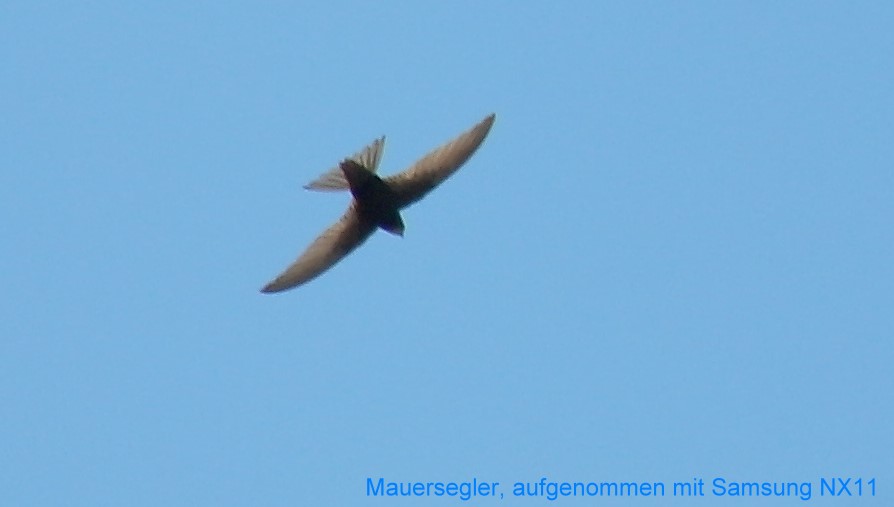 Mauersegler und Präsidenten in einem Thread, na ja. Nun kommt noch die Queen Elizabeth II hinzu. Gerade sah ich im Fernseher, wie sie heute gegen 10:50 in Berlin Tegel eine kleine Maschine bestieg um zum Besuch in Bergen-Belsen zu fliegen. Als die Maschine dann zur Runway rollte, fiel mir ein: Die Flugzeuge starten heute über Spandau, da kommt doch die nette alte Dame bei mir vorbei. Schnell schnappte ich den nächstliegenden Fotoapparat und raus auf dem Laubengang. Eingeschaltet, Zoom auf 7,1-fach und schon kam das Flugzeug der Queen vorbei. Knips, Knips, vorbei.