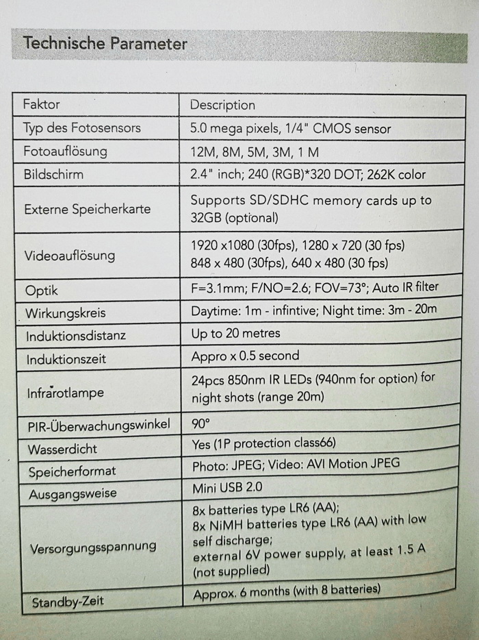 Zunächst mal die Kamera und ein kleiner technischer Überblick aus dem Victure Handbuch dazu: