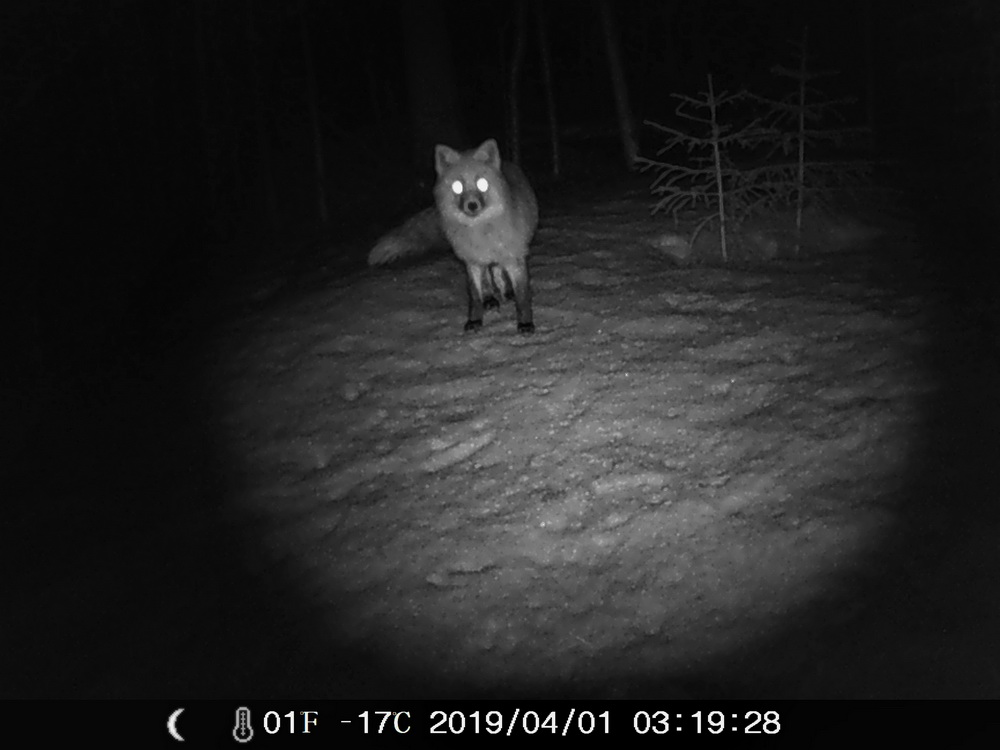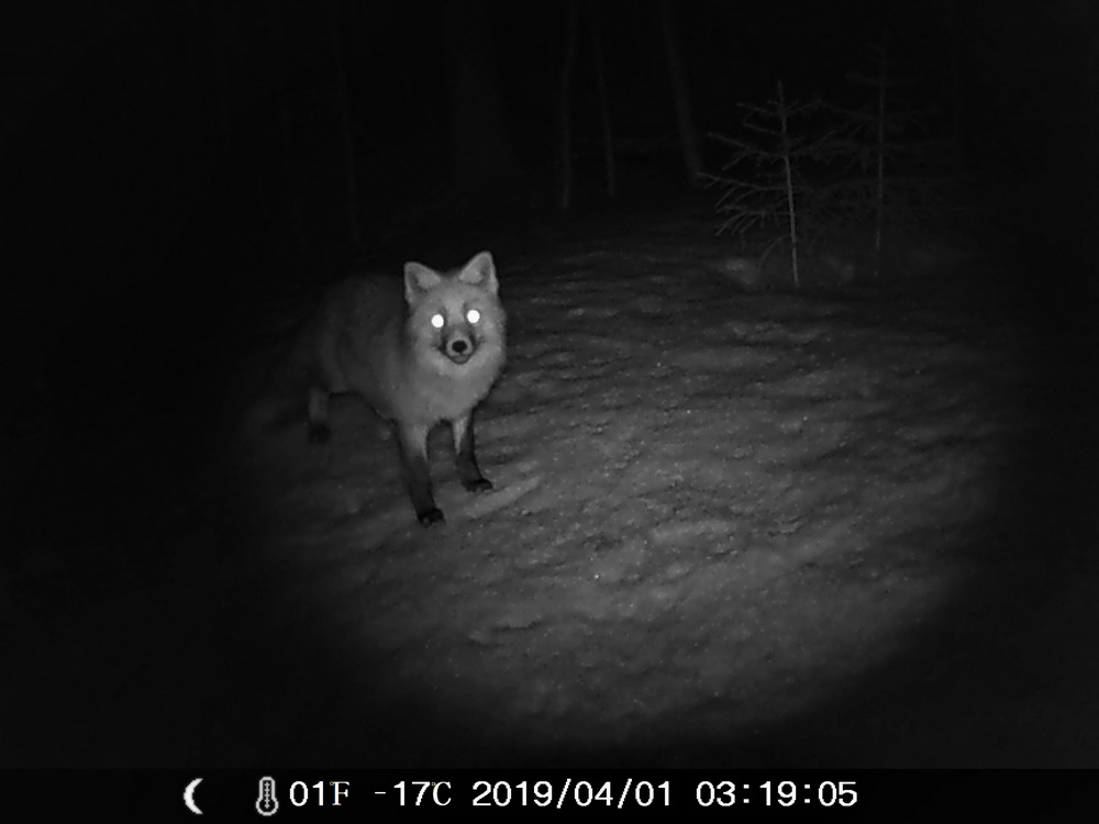 Ich weiß... das sind ja schon wieder Fuchsbilder. Ich bin wohl ein Fuchsmann... mag Füchse und die Füchse mögen mich. Die Tierchen vertrauen mir und ich könnte sie eigentlich aus der Hand füttern, komme also auch bei Tageslicht zum Fotografieren mit optisch besseren Kameras entsprechend nah an sie heran. Nehmt es mir bitte nicht übel, dass hier schon wieder ein Fuchs (diesen hier nennen wir übrigens "Schwarz") gezeigt wird. Die Bilder sollen ja nur ein Beispiel dafür geben, was diese Art Kamera in der Nacht kann... falls jemand von euch beabsichtigt, sich auch mal sowas zuzulegen. In der Nacht zuvor, beim ersten Test, hatte ich - ganz am Rande des Bildes - einen Marder eingefangen, der sich aber leider außerhalb des Lichtkegels befand und nur sehr undeutlich auf dem Bild zu erkennen ist. Geduld ist wohl gefragt. Ich bleibe also dran und werde hier auch weiterhin Bilder (mit anderen Tieren) zeigen, von denen ich meine, dass sie es wert sind.