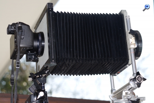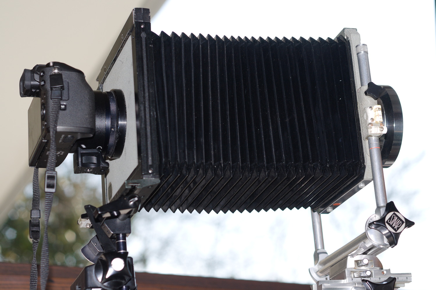 P.S.: den Anschluß an die Sinar habe ich für die Canon 400D gemacht, es ist also noch'n Adapter dazwischen. Einen nativen Anschluß für die Canon M5 beabsichtige ich, denn damit können deutlich kürzere Objektive verwendet werden, mit diesem ist bei 100mm kaum eine Verstellung möglich, und wenn's kürzer werden soll -minimal 70mm- muß auch der WW-Balgen weg ... (er wird dann durch einen bei kurzer Belichtungszeit irrelevanten Lichtspalt ersetzt )