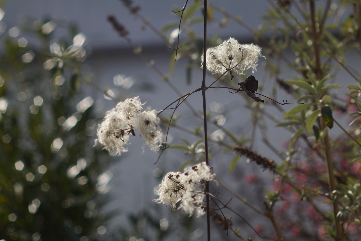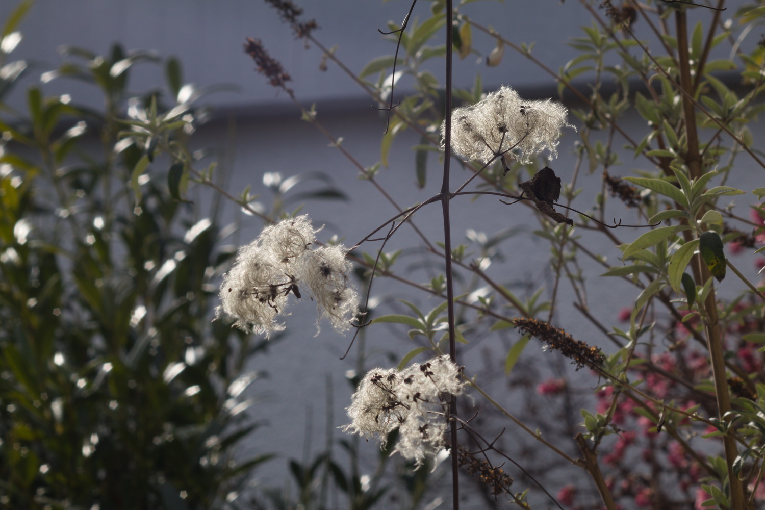 Zuerst mit Offenblende, also bei f=4.5 - da ist's erwartungsgemäß von beschränkter Schärfe, das mäßige Gegenlicht könnte auch etwas beitragen, aber die spezielle Wirkung bei Unschärfe läßt sich beobachten (ohne die Verkleinerung wäre das aussagekräftiger): Der Objektabstand ist jeweils schon ein paar Meter.