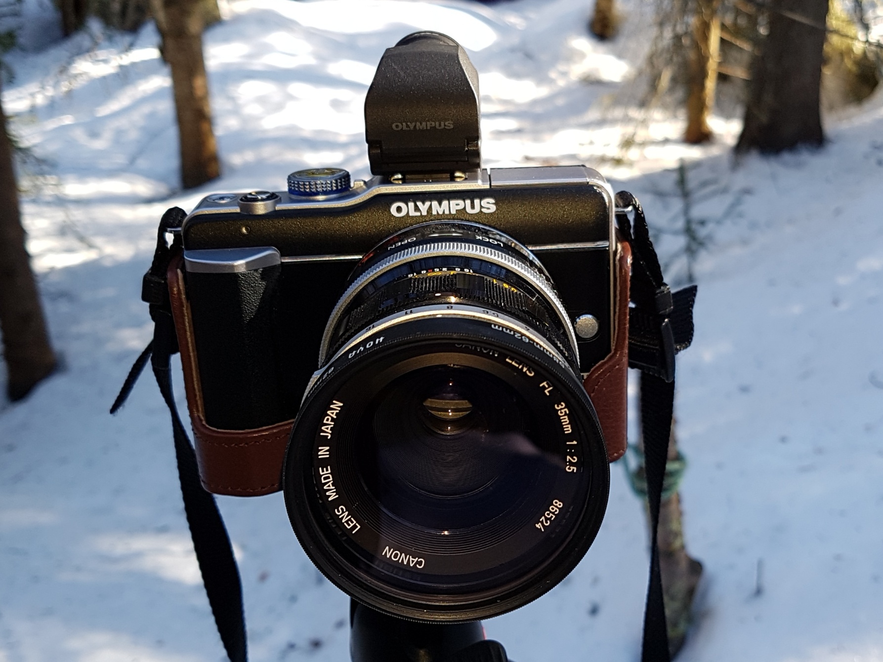 in den letzten Tagen hier oben kletterten die Temperaturen leicht in den Plusbereich und die Sonne „grinste“meist breit von einem fast wolkenlosen blauen Himmel auf diese Gegend herab. Gute Gründe für mich, die kürzlich erworbene Olympus Pen E-PL 1 auszuführen um daran mittels Adapter zwei Canon FL Objektive zu testen, welche ich mir bereits vor einiger Zeit mal zugelegt hatte.