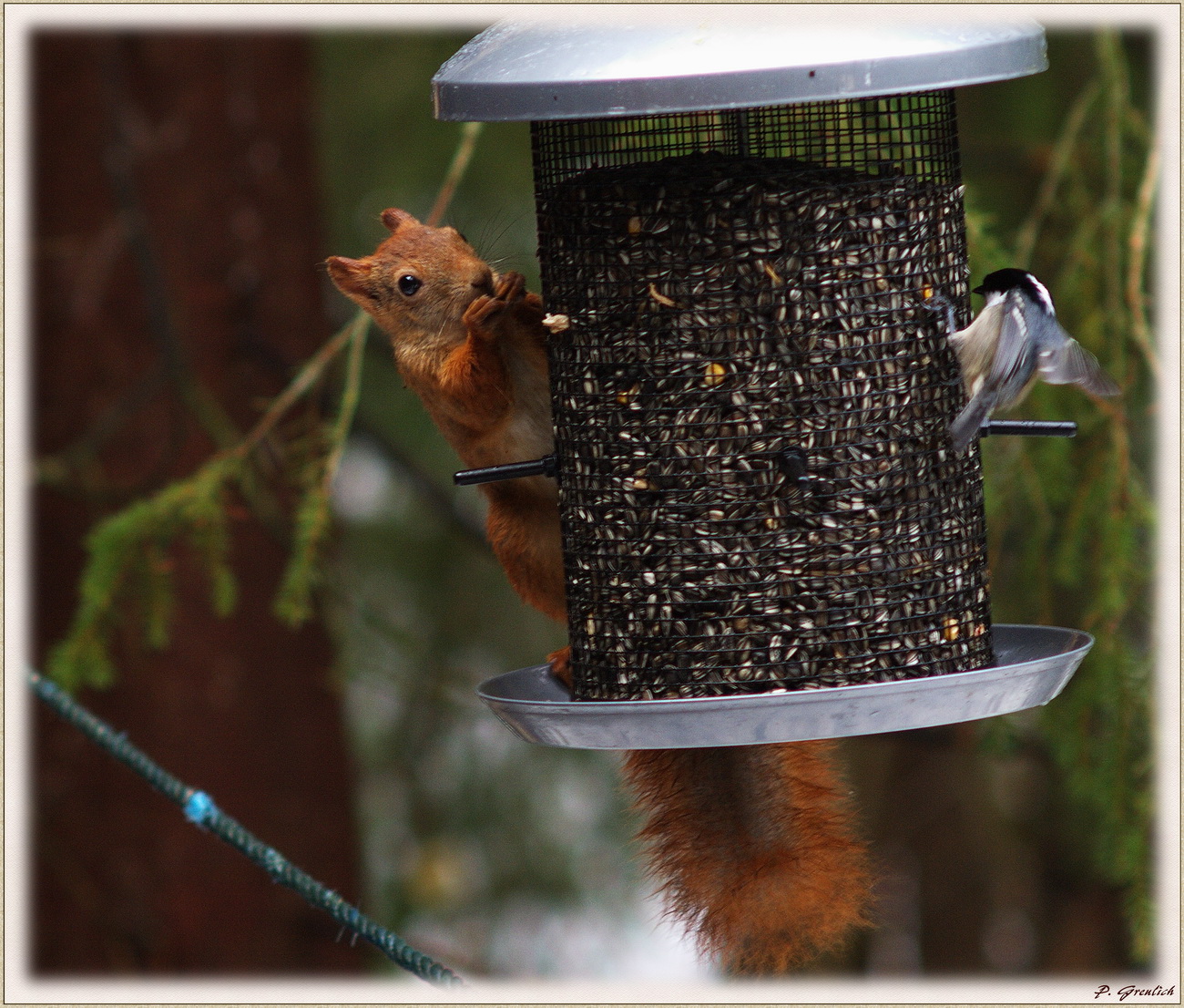 Dies Eichhörnchen hat übrigens keine pinselartigen Haare an den Ohren. Sowas hab ich hier noch nicht gesehen. Eine Mutation?