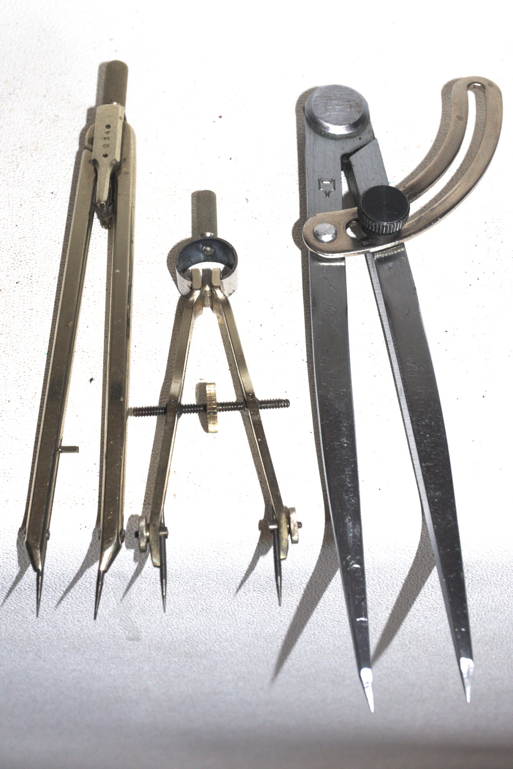 .. und meist kommt der stabilste Zirkel, der Anreißzirkel, zum Einsatz - und dabei oft genug über dessen Belastbarkeitsgrenzen hinaus, sodaß ich ihn immer mal wieder zurechtbiegen muß ... ... wobei die Spitzen alles andere als optimal sind. Und trotz gleichzeitiger weiterer kabbalistischer Beschwörungen gegen Rost etcpp. wie Erwärmung, längerer Öleinwirkung etcpp. verweigert sich manche Schraubung.