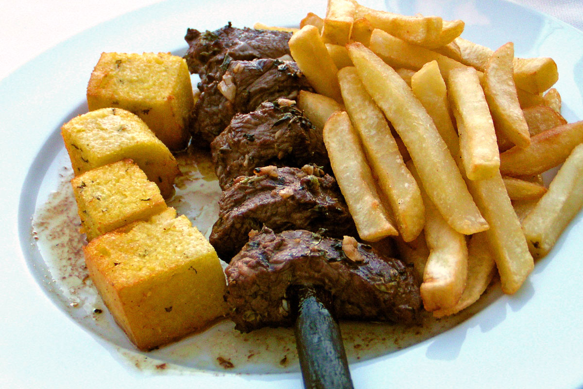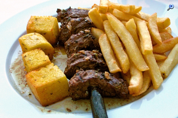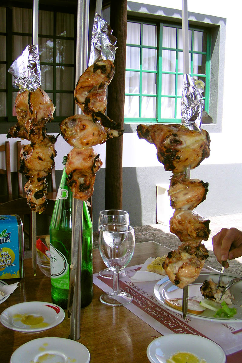 Espetadas sind lange Spieße mit marinierten, durchwachsenen Rindfleischstücken, die mit Knoblauch und Lorbeerblättern gewürzt sind. Espetada de frango wird mit Hühnerstücken zubereitet. Die Spieße werden am offenen Feuer gebraten.
