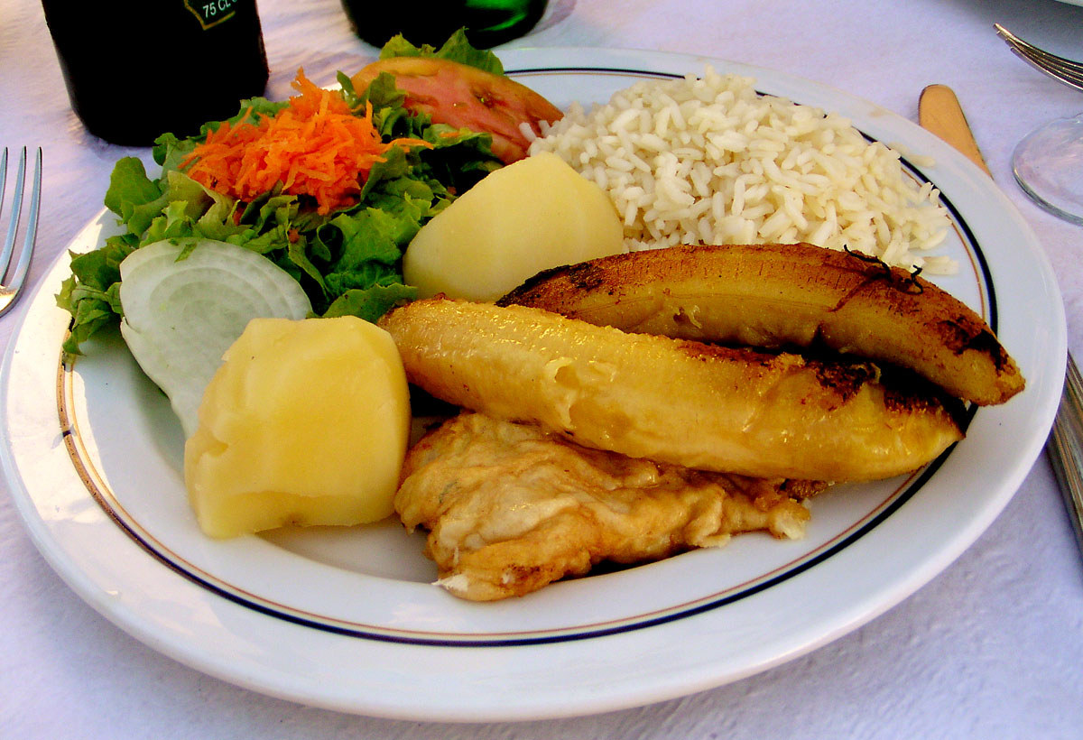 Eine Spezialtät, die nur auf Madeira angeboten wird: Espada, der schwarze Degenfisch. Hier im Backteig mit gebratenen Bananen ...