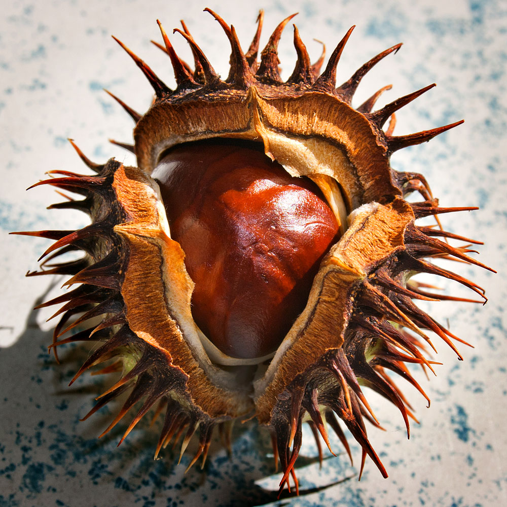 Soeben ist mir im oberösterreichischen Donautal die erste Kastanie, korrekt : Frucht der Rosskastanie (Aesculus hippocastanum), vor die Kamera gefallen. Der Herbst, die schönste Zeit für Naturfotografen, hat begonnen!