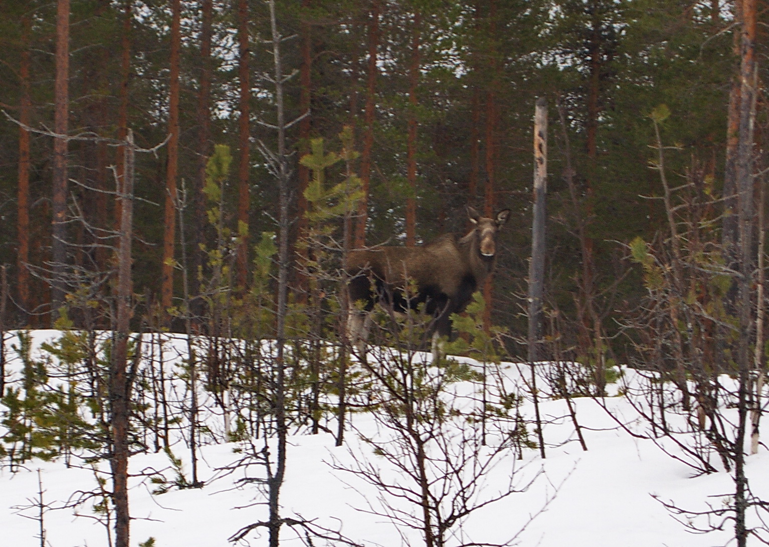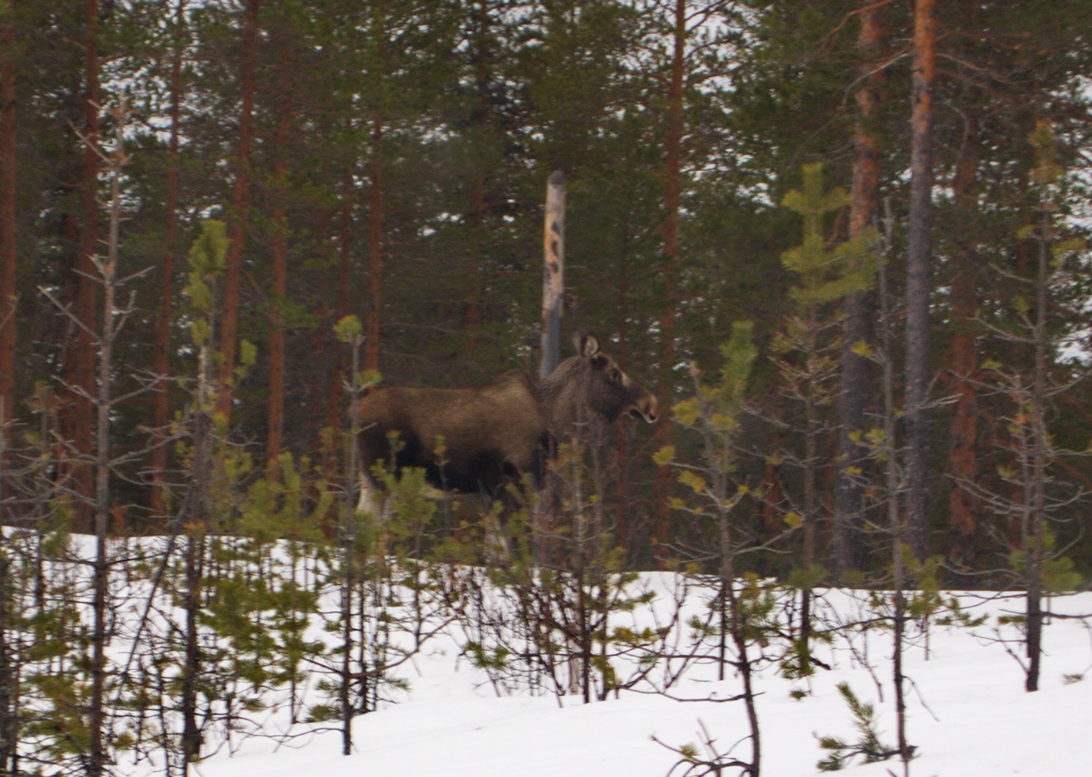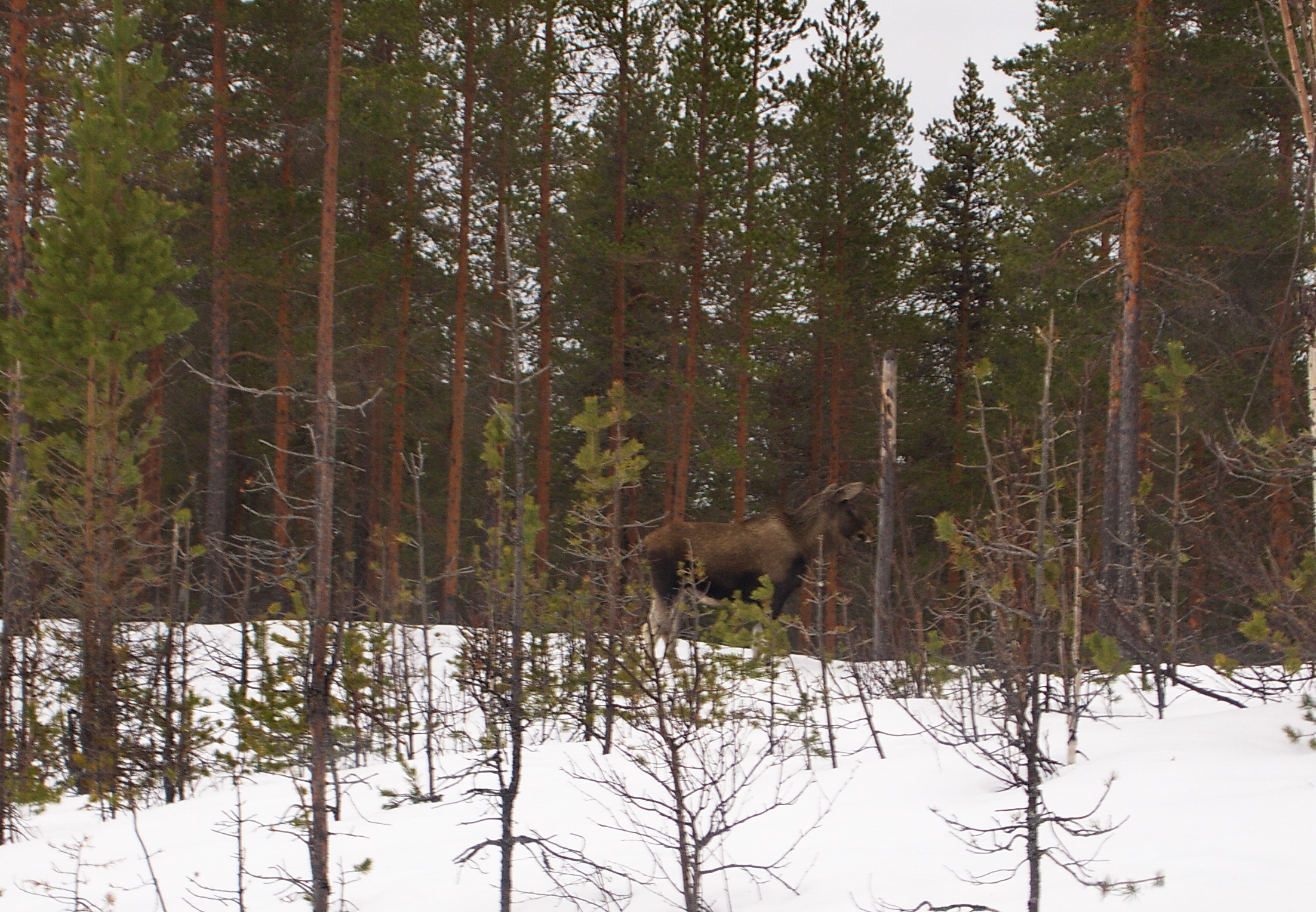 am Wegesrand... sah ich heute einen Elch. Schlechtes Licht an diesem dunkelgrauen Tag. Kontrast kaum vorhanden. Natürlich hatte ich auch keine Kamera mit großem Teleobjektiv dabei. Man hat ja immer die falsche Ausrüstung mit. Ich jedenfalls.