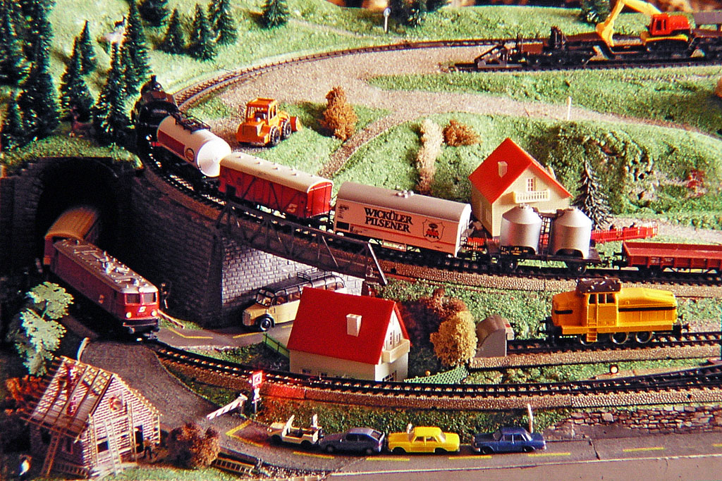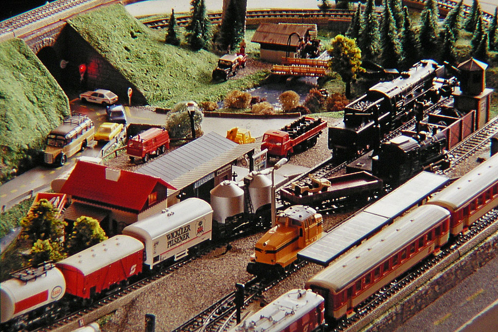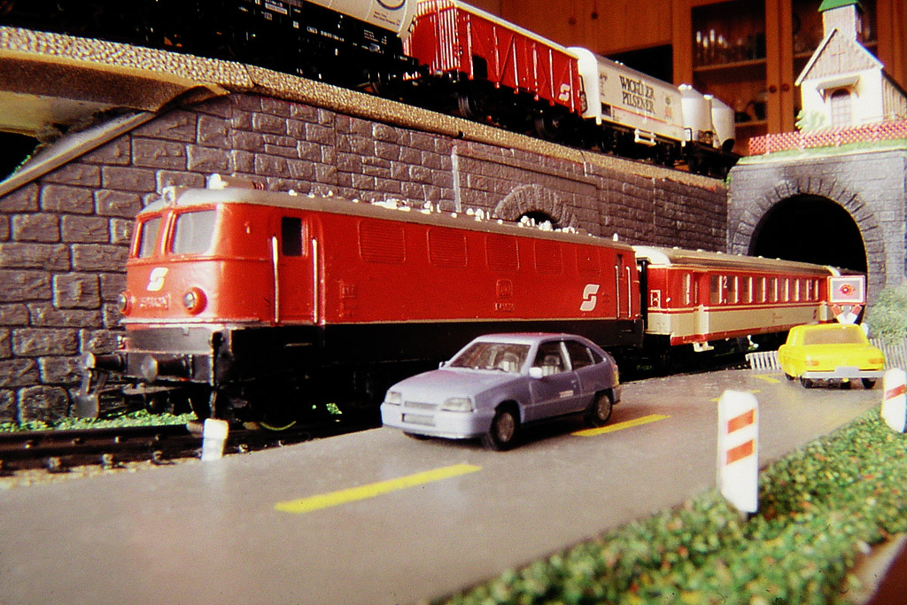 Genau diesen Eindruck hatte ich beim Besuch der ÖGEG-Anlage. Wie eine "Modellbahn in Originalgröße" Dazu einige Bilder von der Modellbahn, die ich 1985 für unseren Sohn gebaut habe: