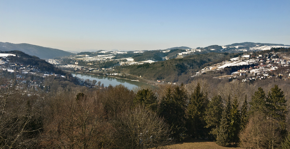 Blick nach Westen mit dem Donautal und meinem Wohnort Puchenau