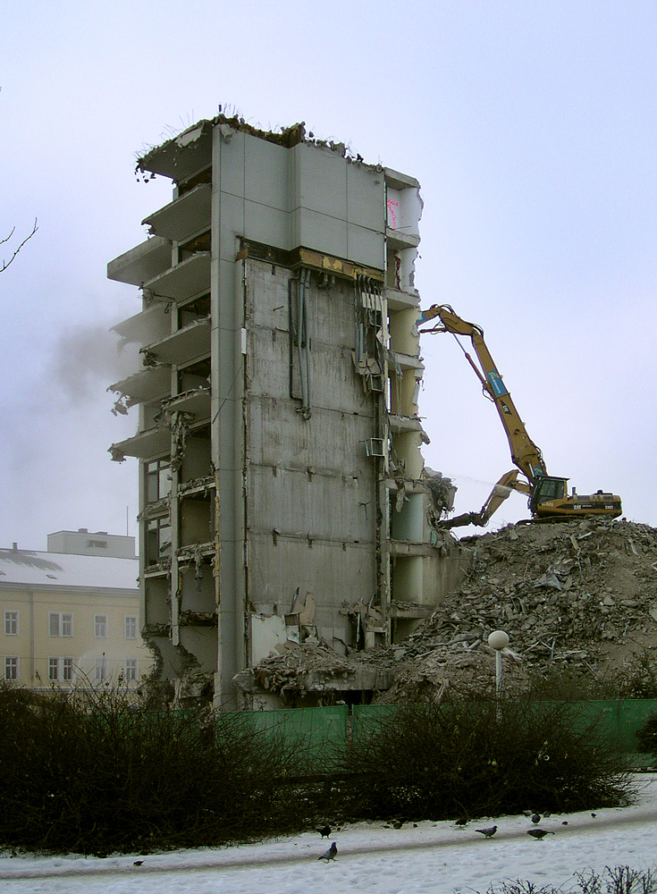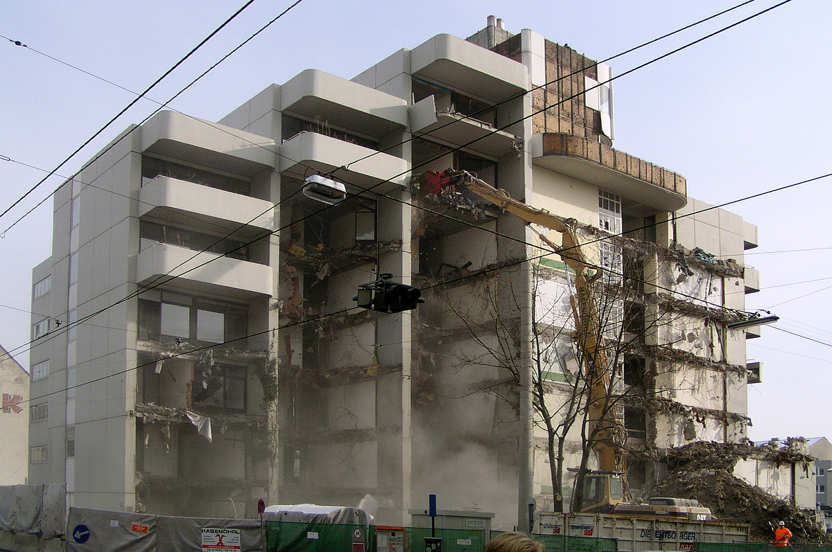 Heute das Ende eines Bauwerkes. Das Franz Hillinger Seniorenheim in Linz-Urfahr wurde durch einen Neubau ersetzt. Der Abbruch erfolgte "aufs Grobe" in wenigen Tagen.