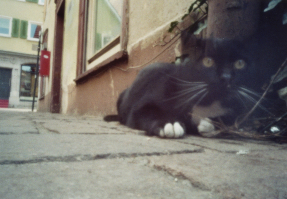 Die Katze wohnt bei meinem Schneider. Sie ist eigentlich sehr scheu. Wahrscheinlich, weil sie mich kennt, war die Neugierde doch größer als die Angst. Sie wollte wohl genau schauen was ich da am Boden so mache.
