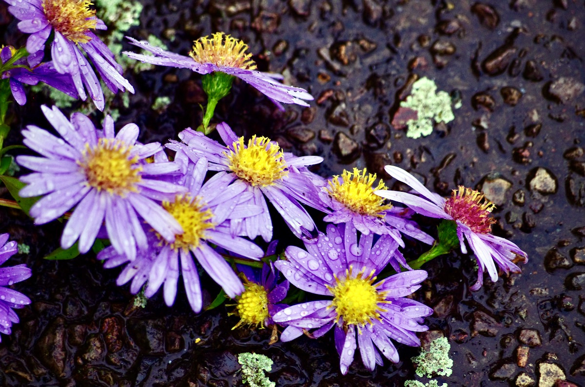 gewa13: auf dem folgenden Bild mit den letzten Blüten dieses Jahr sind die grünen Flecken auch Flechten oder? Ich konnte das bei strömendem _Regen nicht weiter untersuchen und fotografieren ... auch mangels Makroausrüstung ...