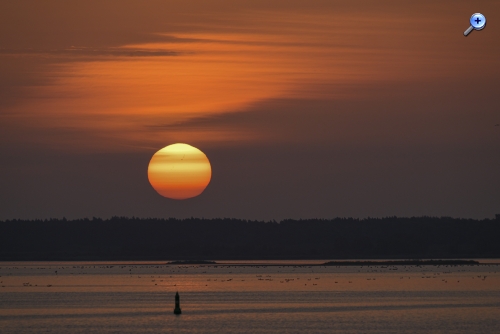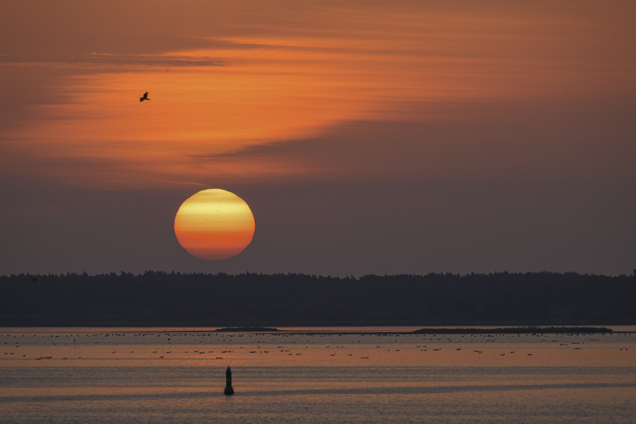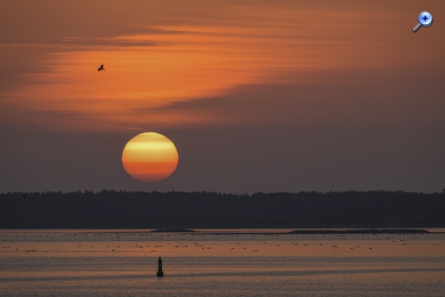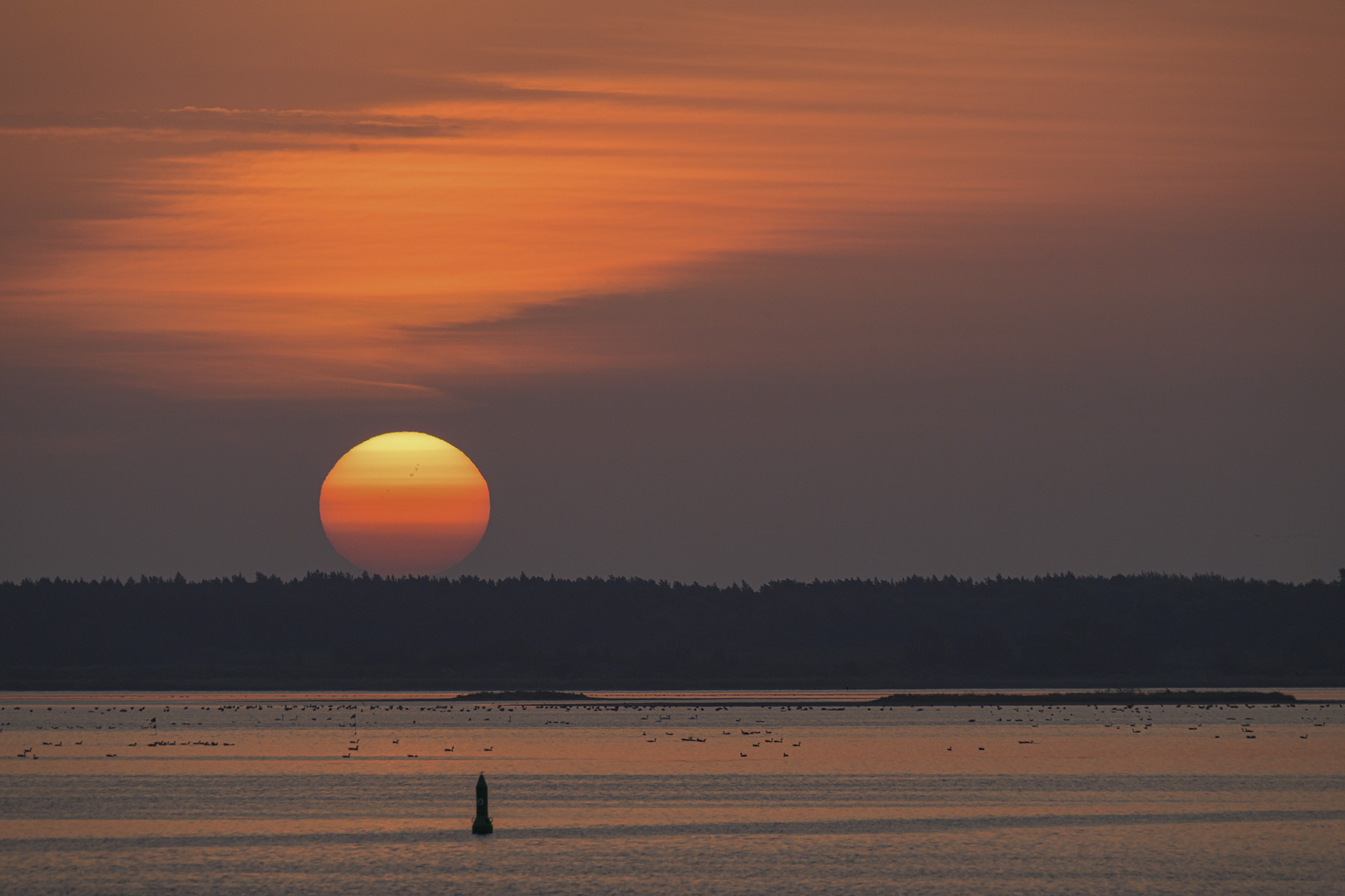 vor etwa 14 Tagen der Blick aus dem Fenster meiner Ferienwohnung auf Hiddensee aufgenommen. Chronologie eines Sonnenaufgangs über Rügen - bei schnellem Schalten wirkt es wie ein Daumenkino. Auf der Sonne sind 3 Flecken zu erkennen. Da sie auf allen Bildern an der gleichen Stelle sind, die Sonne sich räumlich bewegt hat, können es keine Vögel, Sensorflecken o.ä. sein. So vermute ich, es handelt sich um Sonnenflecken.