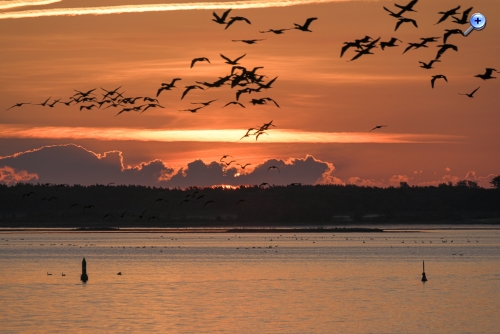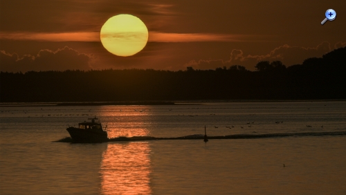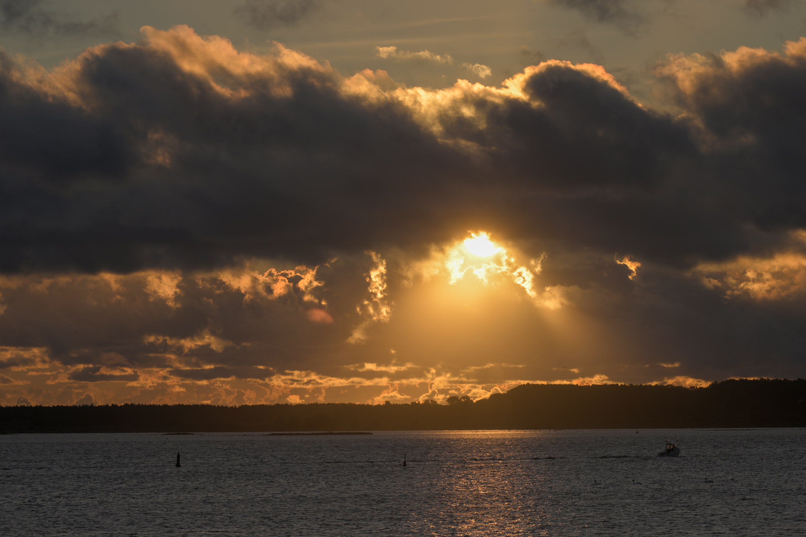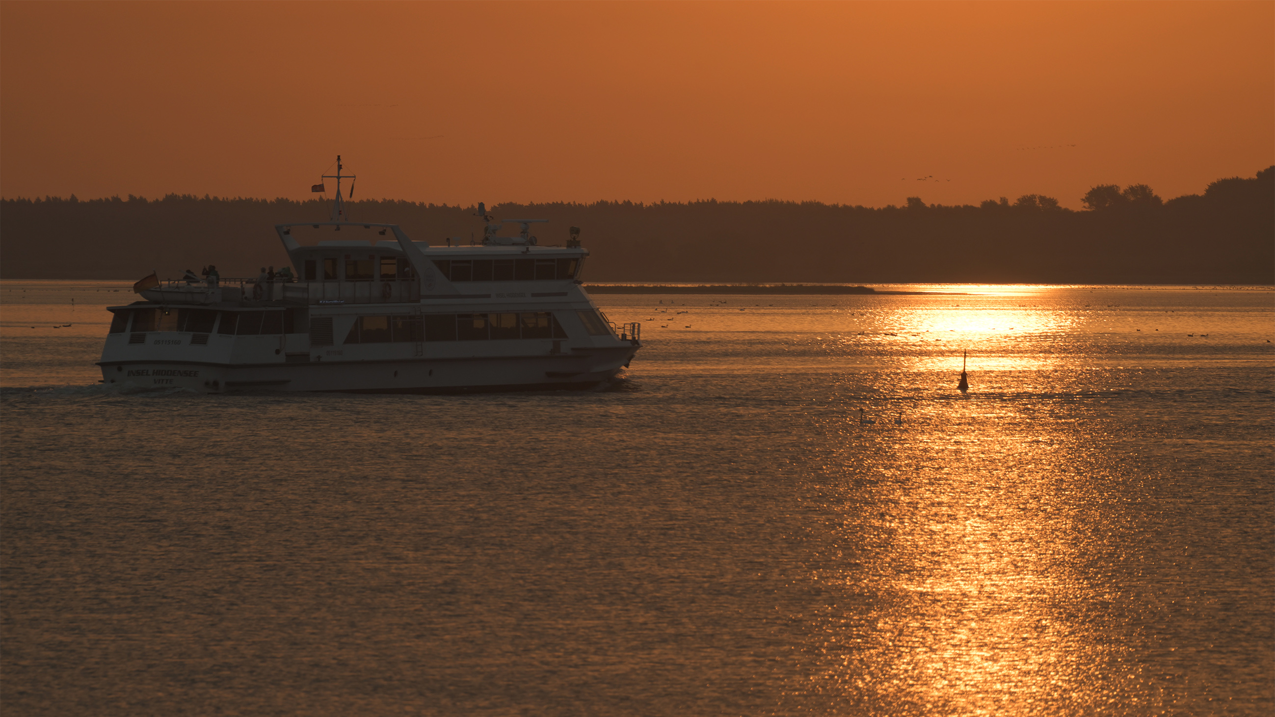 Ja, Schiffe und Boote waren auch da - allerdings immer, wenn die Sonne noch nicht oben war oder wenn sie schon zu hoch stand. Ich hätte gern auch mal eins vor der Sonne gehabt. Hier noch ein Nachschlag mit Schiffen. Im letzten Bild ist "mein Fenster" zu sehen, aus dem ich das Vergnügen hatte, an 5 von 7 Tagen die Sonne früh zu begrüßen.