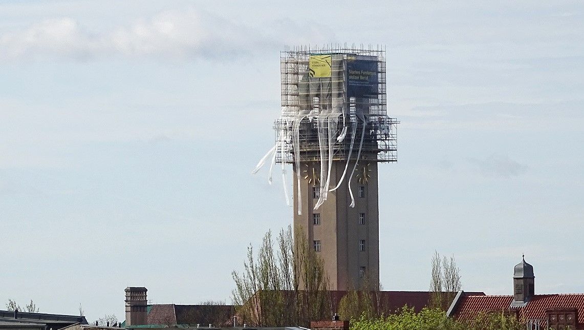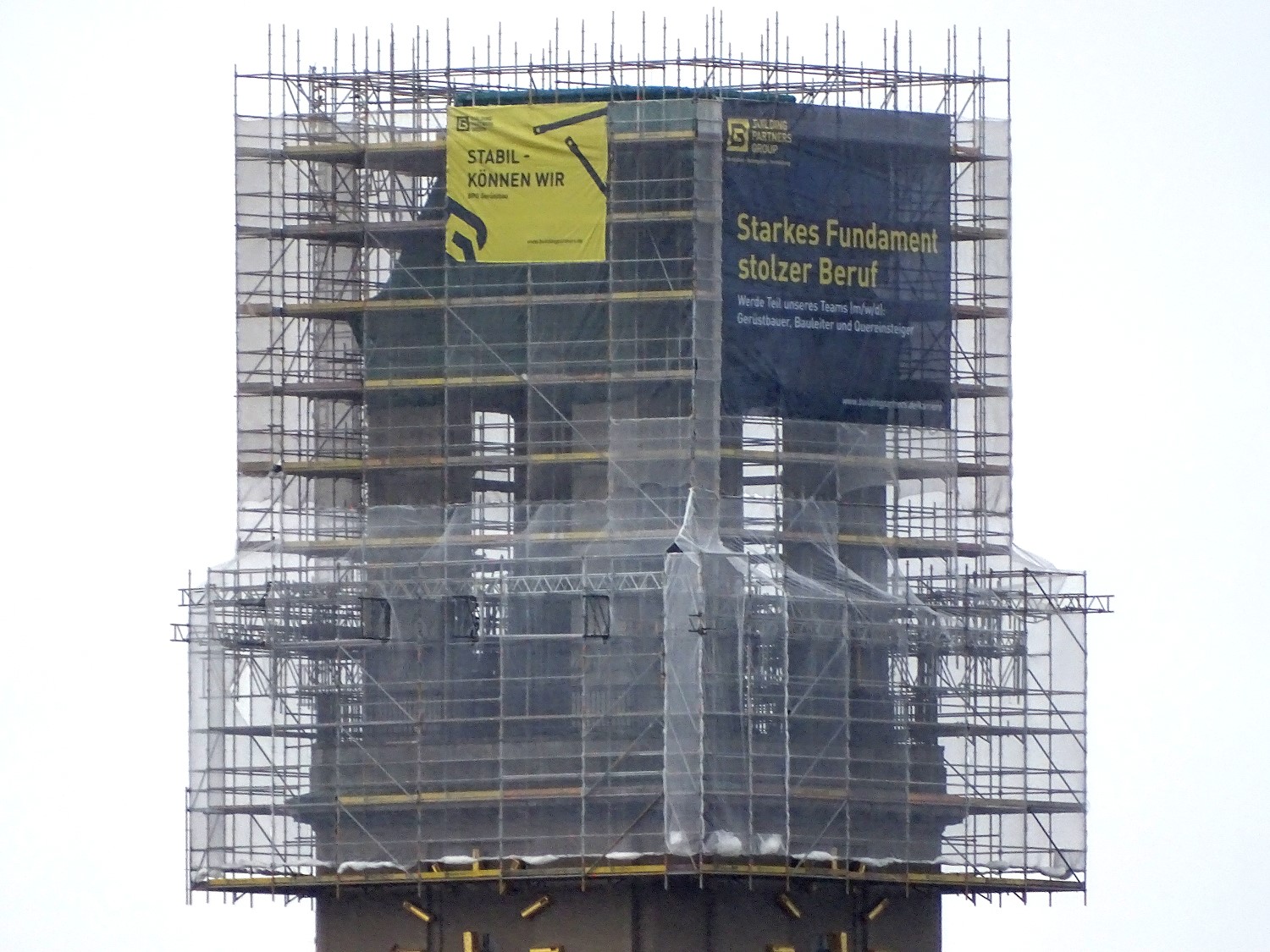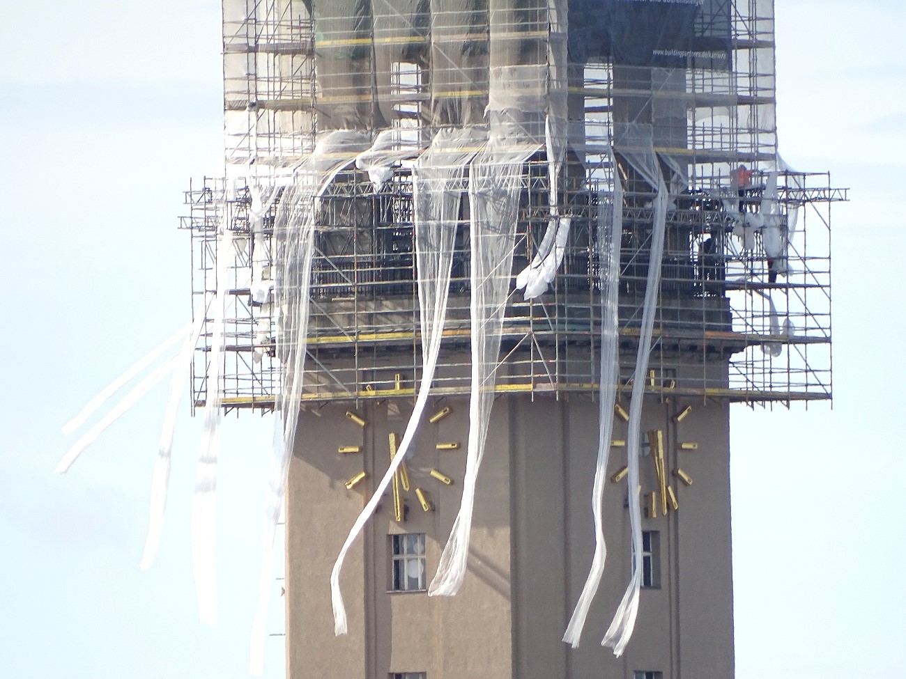 am Spandauer Rathaus in Berlin wird seit vielen Monaten am Turm gewerkelt. Manchmal sieht man wochenlang keine Veränderung, keine Bauarbeiter und dann heute das: