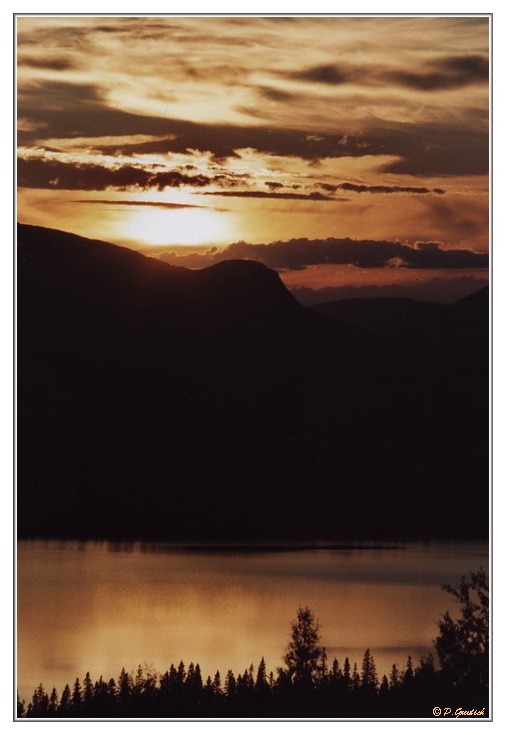Jeder Mensch hat Lieblingsorte, an die er immer wieder gerne zurückkehrt, wenn er kann. Einer dieser Orte ist für mich die Gegend um das Gebirge Skäckerfjäll im westlichen Jämtland/Schweden. Diese Aufnahme ist vor einigen Jahren dort bei Sonnenuntergang im Spätsommer entstanden.