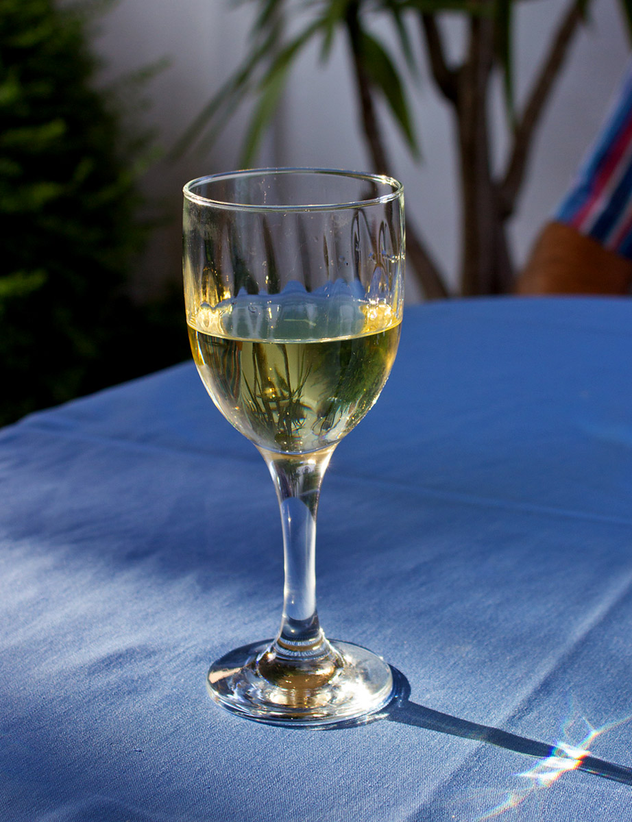 Und wenn der letzte Sonnenstrahl das Glas mit griechischem Retsina streift machen wir uns zufrieden und satt auf den Heimweg.